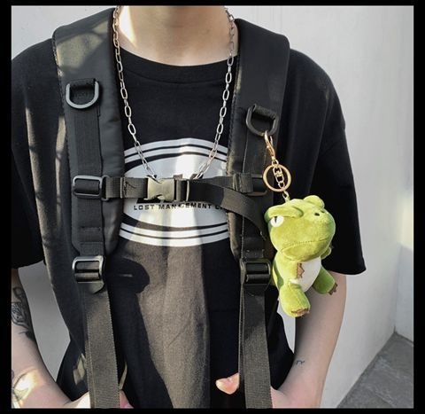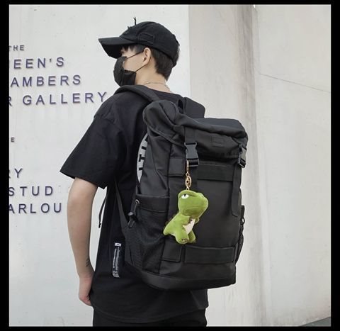 • 공룡 펜던트가 달린 검은색 가방