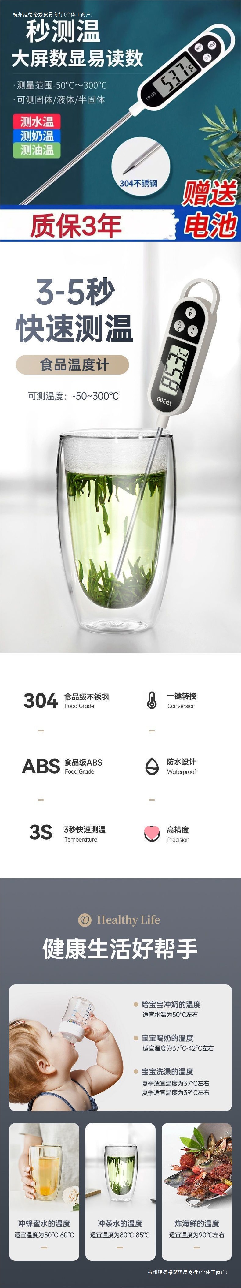 식품 온도계 주방 상업용 튀김 커피 온도계 물 온도 우유 온도 고정밀 프로브 유형 오일 온도계스토어 가기