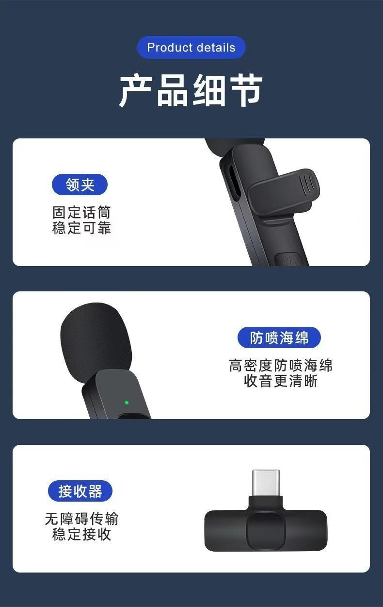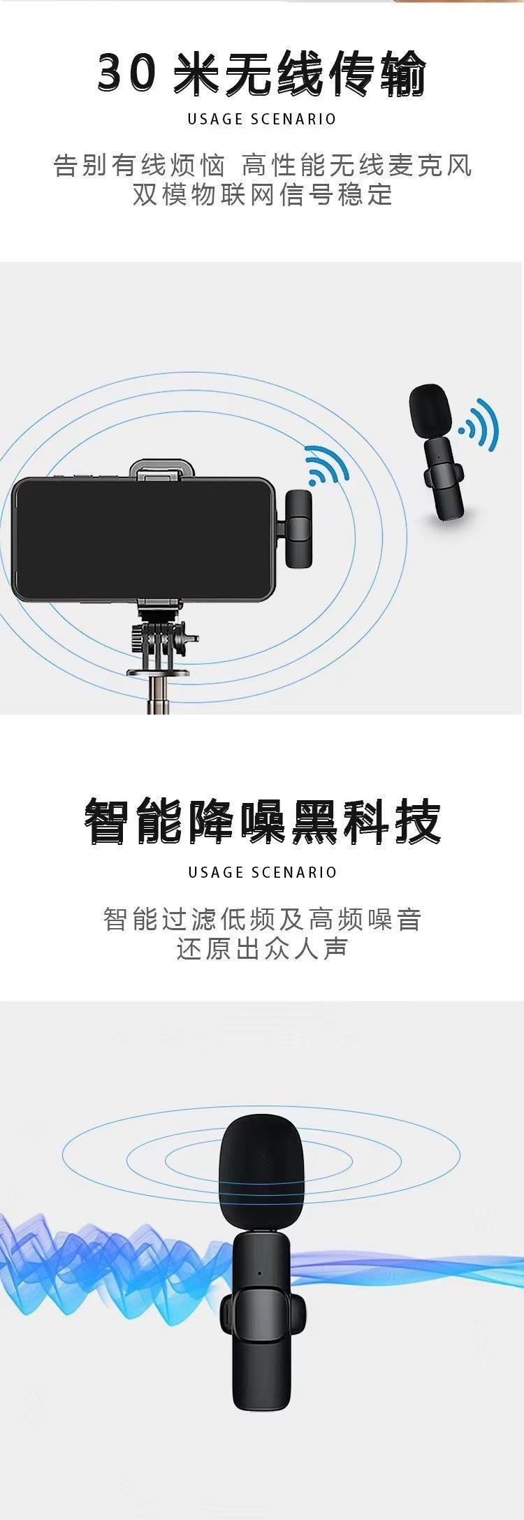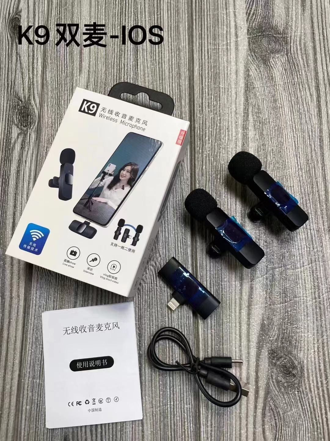 크로스보더 k9 무선 핀 마이크 야외 비디오 라이브 방송용 1:2 휴대폰 마이크 녹음 무선 마이크스토어 가기
