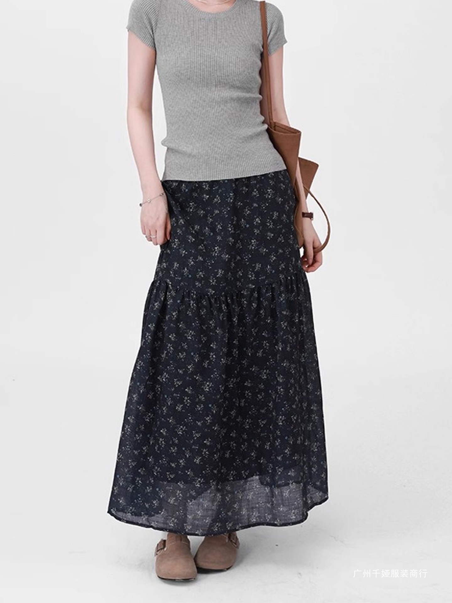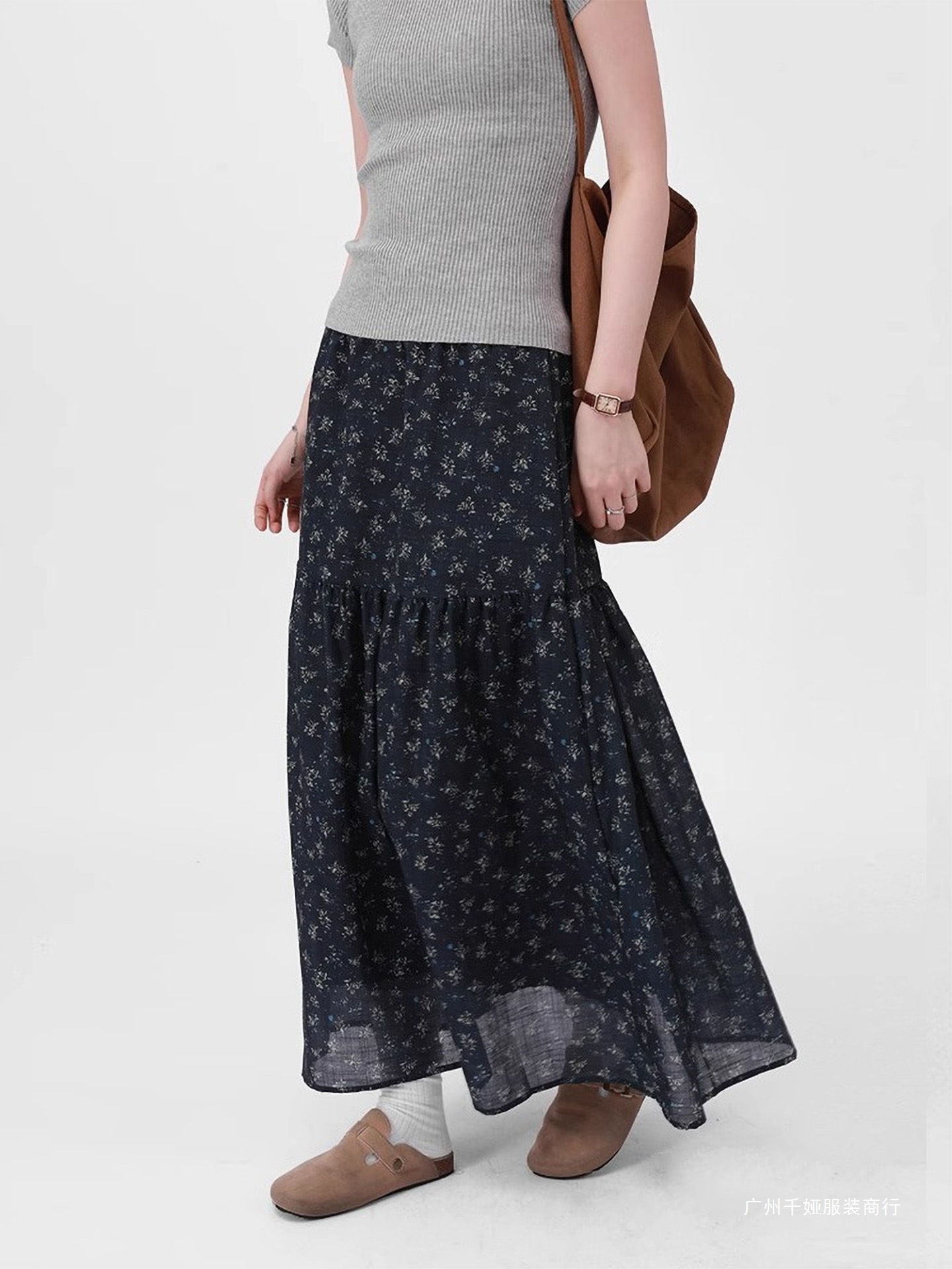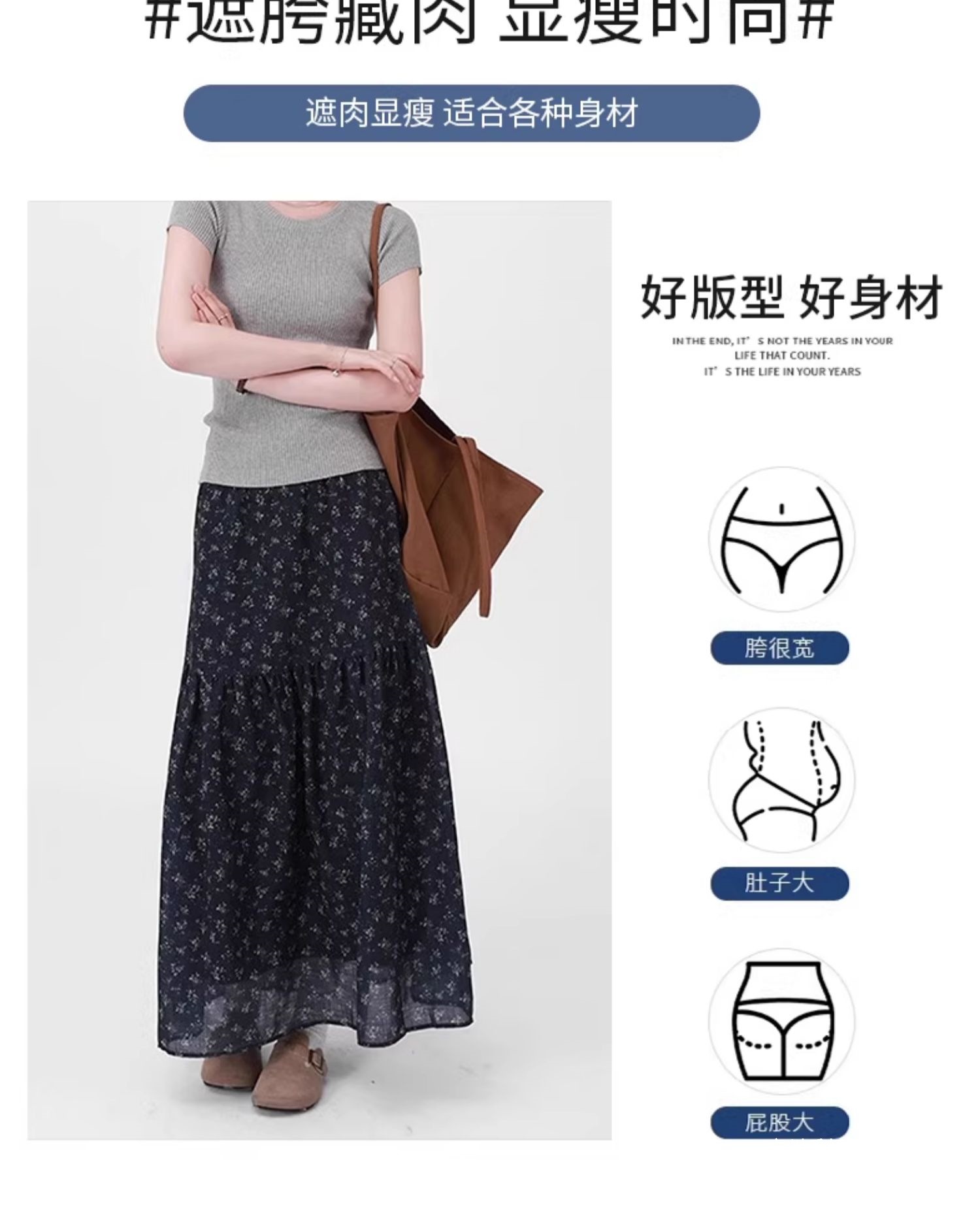 고기의 보이지 않는 유물~여름 여성용 꽃무늬 스커트 하이웨이스트 슬리밍 배형 몸매 중간기장 면 거즈 A라인 스커트