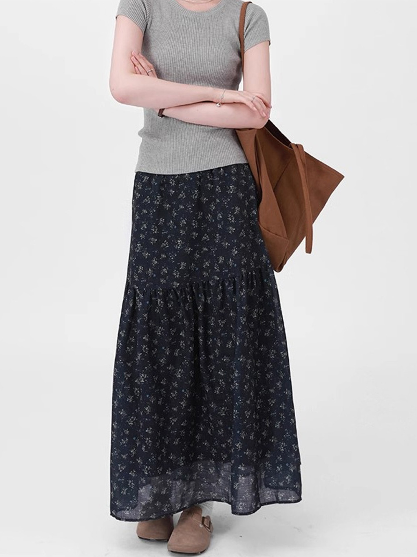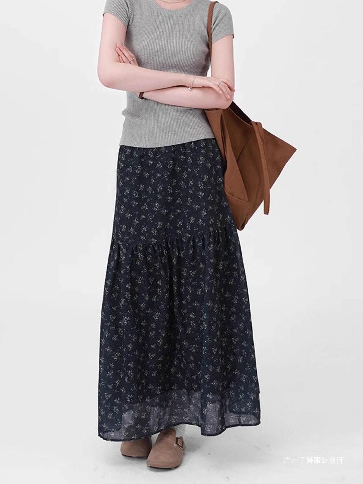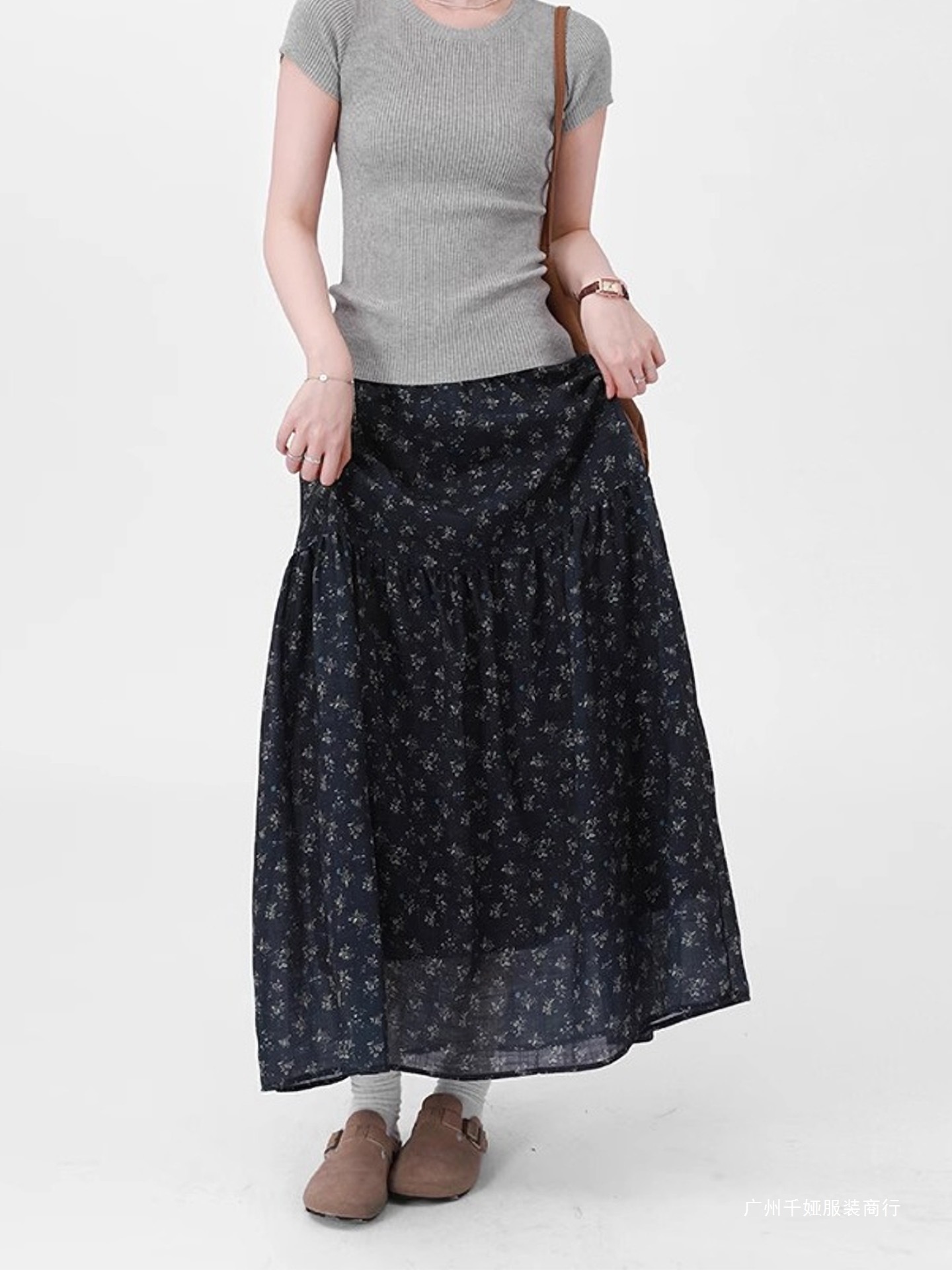 고기의 보이지 않는 유물~여름 여성용 꽃무늬 스커트 하이웨이스트 슬리밍 배형 몸매 중간기장 면 거즈 A라인 스커트