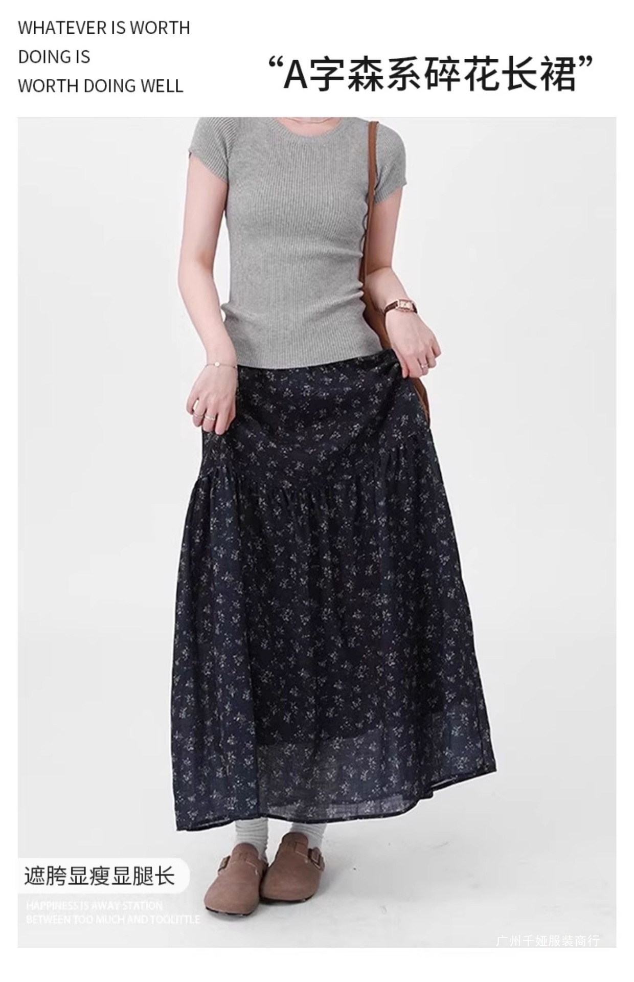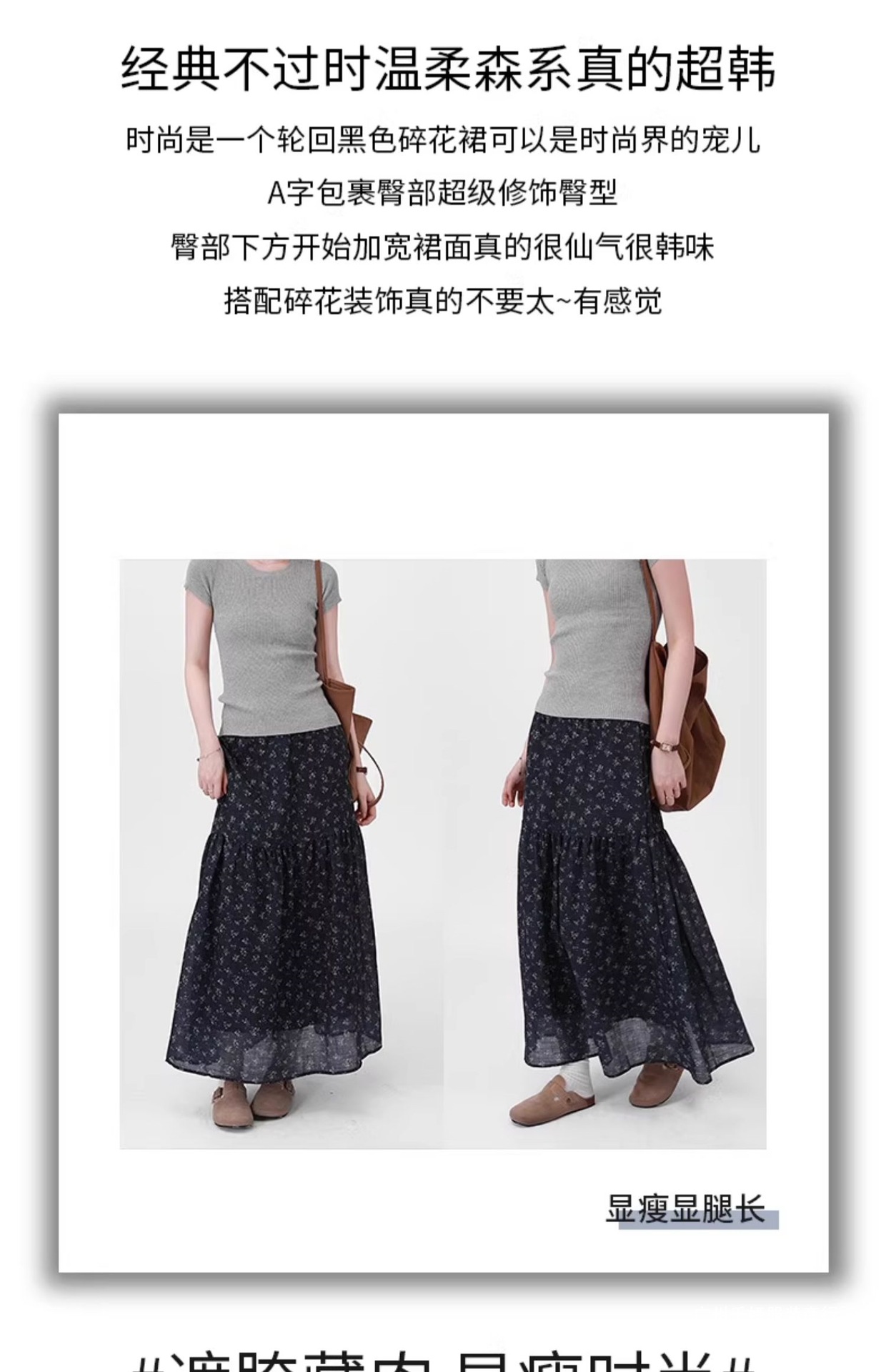 고기의 보이지 않는 유물~여름 여성용 꽃무늬 스커트 하이웨이스트 슬리밍 배형 몸매 중간기장 면 거즈 A라인 스커트스토어 가기