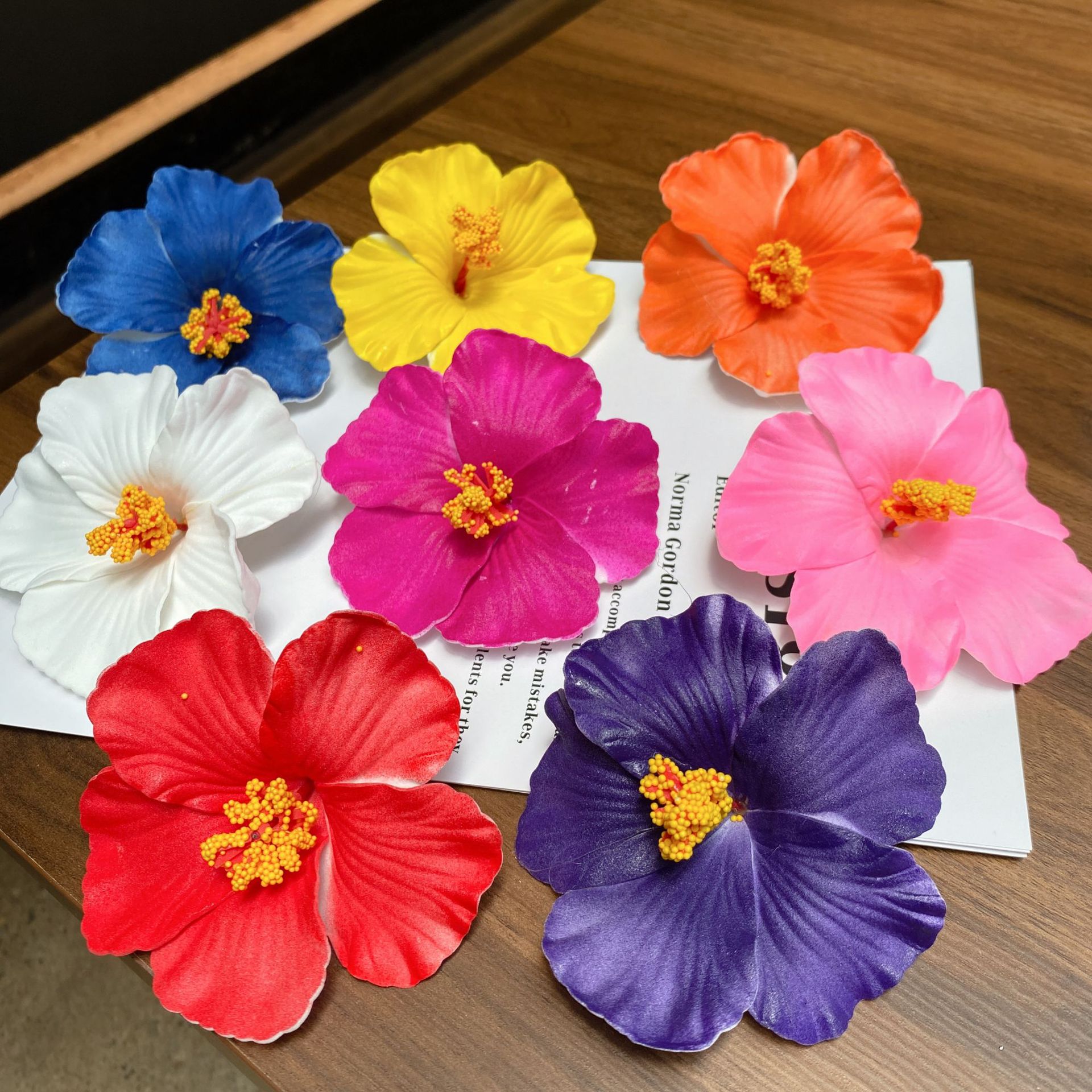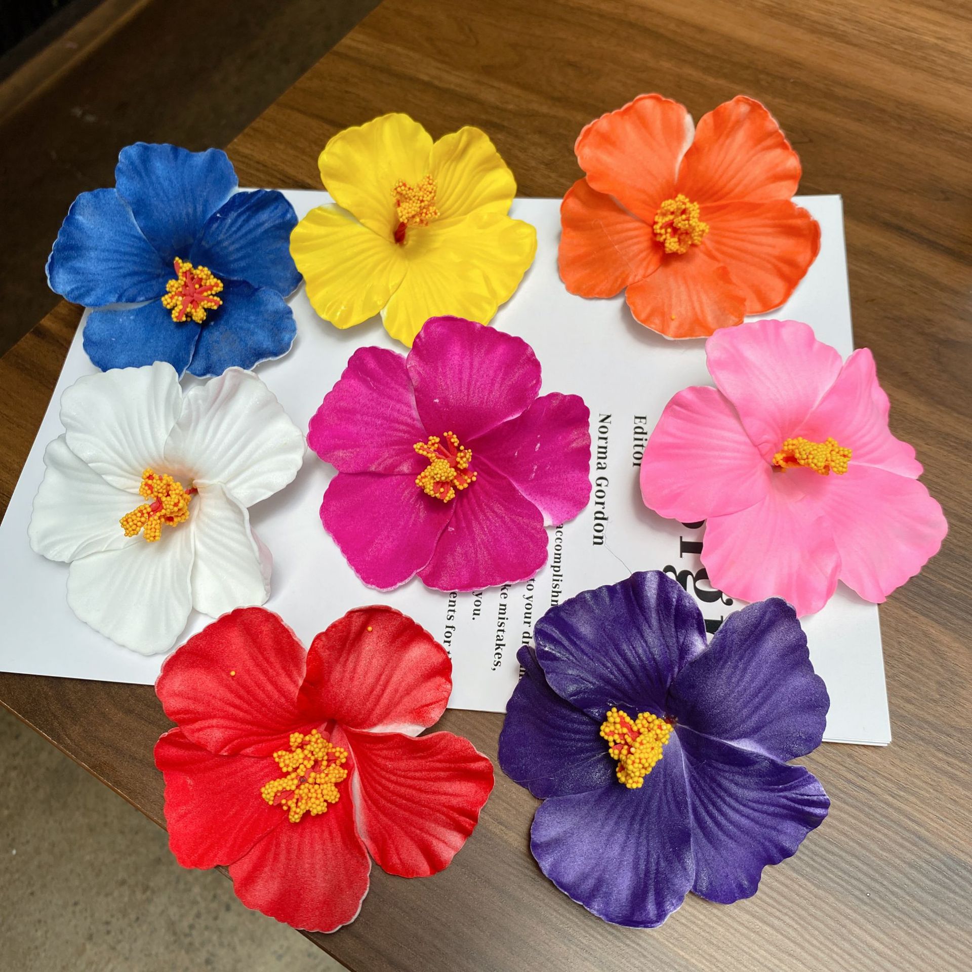 시뮬레이션된 히비스커스 머리핀, 화려한 꽃, 플루메리아, 오리집 클립, 수영복, 여행용 해변 모자, 헤어 액세서리, 사이드 클립