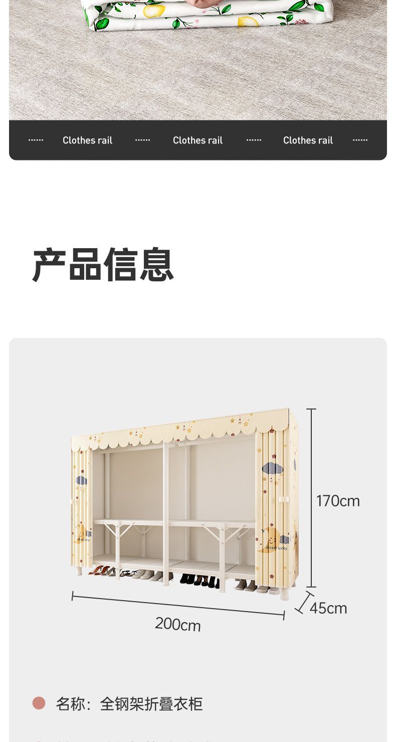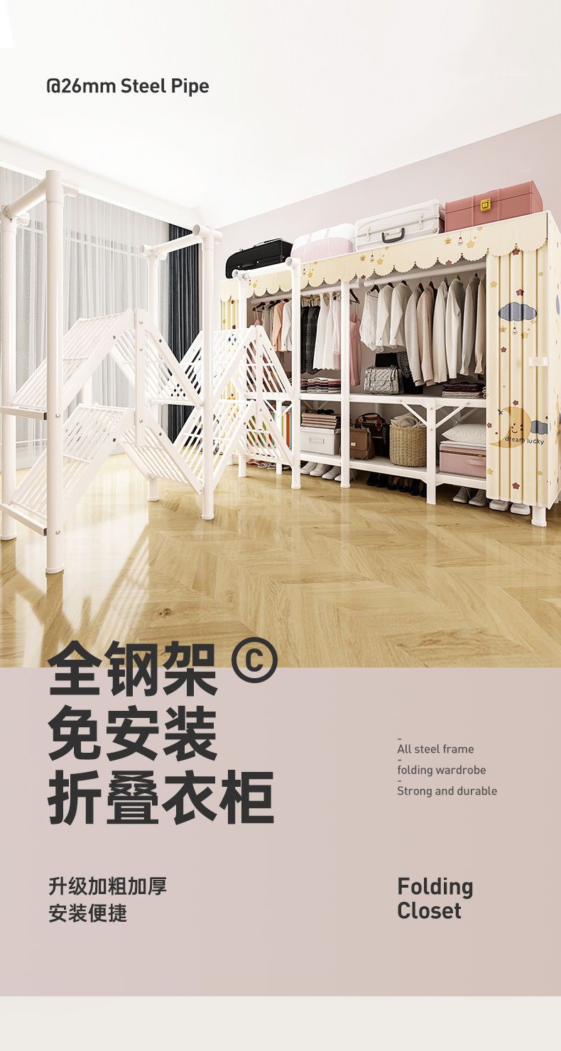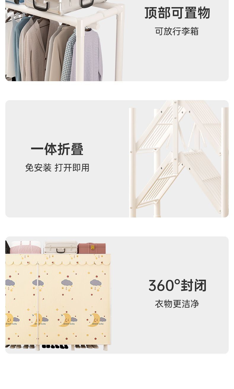 접이식 옷장, 가정용 침실 걸이 옷장, 간단한 설치가 필요 없는 천 옷장, 임대실, 튼튼하고 내구성이 뛰어난 수납 옷장