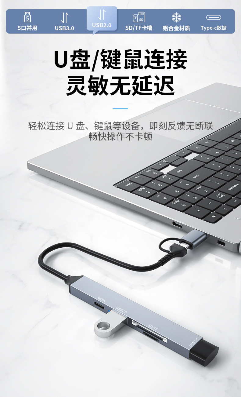 type-c 도킹 스테이션 허브 카드 리더기 5-in-one 허브 SD/TF 듀얼 카드 슬롯 USB 3.0 확장기