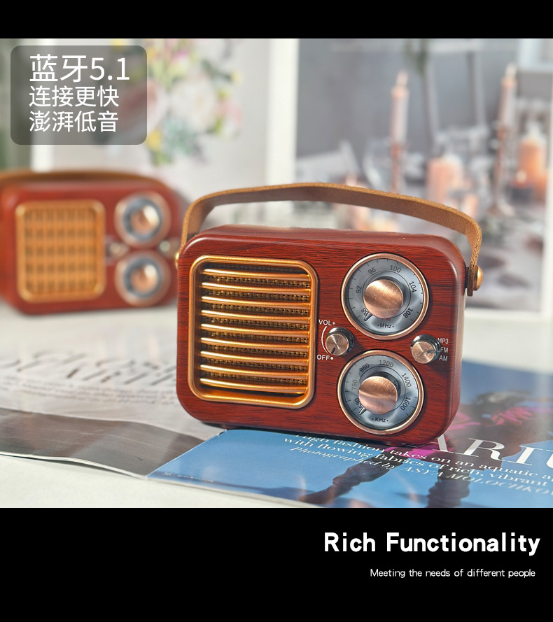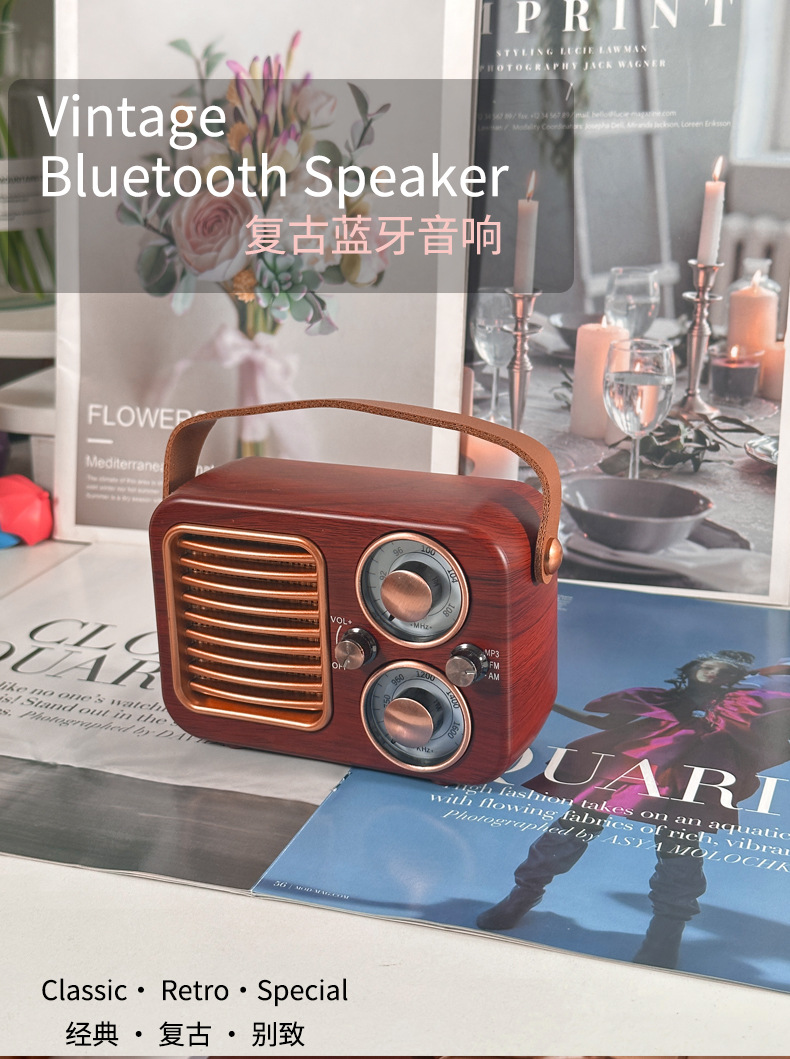 새로운 레트로 블루투스 스피커 라디오 FM 휴대용 스피커 TF 카드 오디오 개인 모델 서브 우퍼 크리 에이 티브 소형 스피커