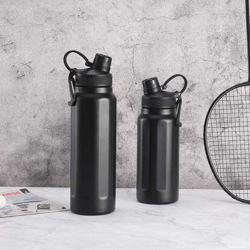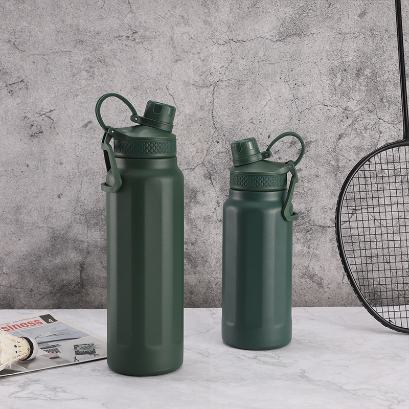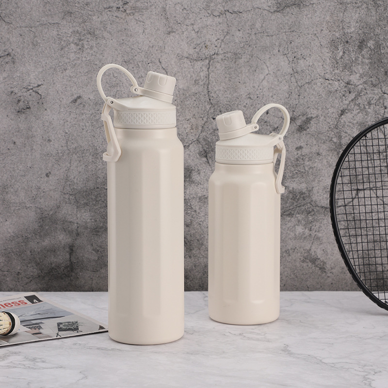 야외 대용량 스포츠 물병, 간단한 진공 스테인레스 스틸 여행 등산 물병, 손잡이, 휴대용 직접 마시는 보온병 컵