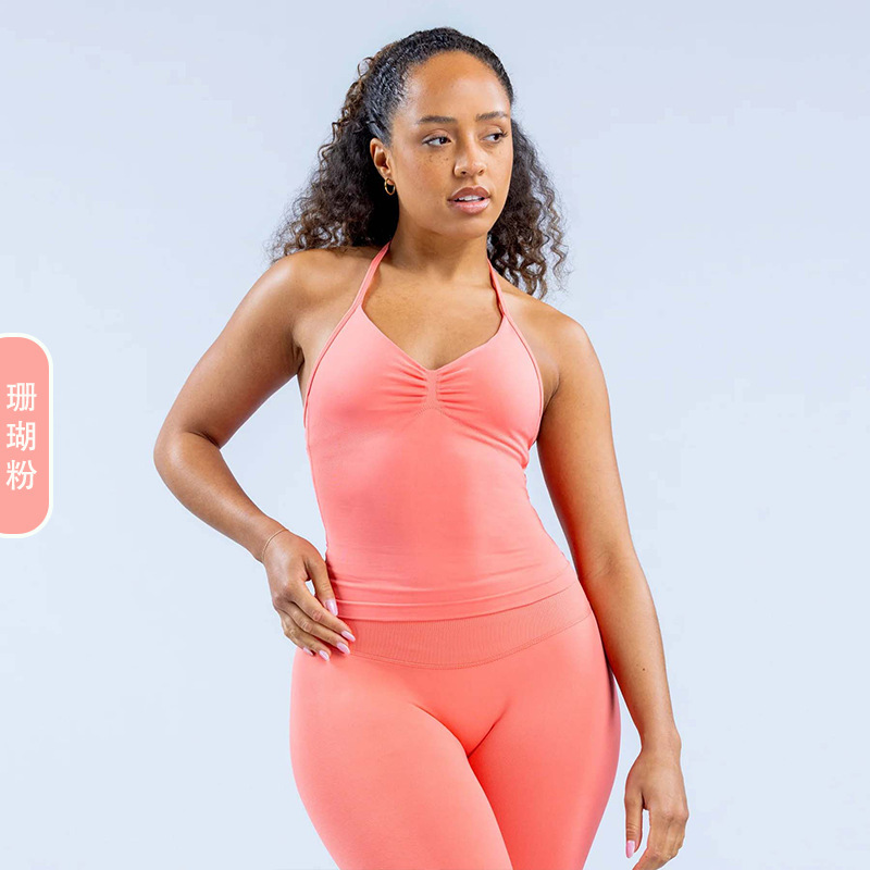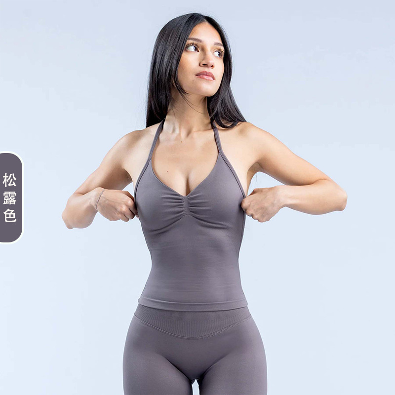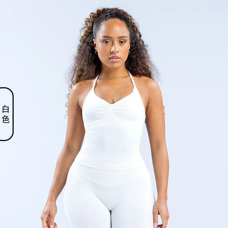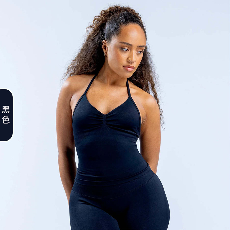 유럽과 미국의 DFYNE 가슴 패드가 있는 이음매 없는 등이 없는 홀터넥 스포츠 조끼 고탄성 매트 나일론 요가 브라 속옷스토어 가기