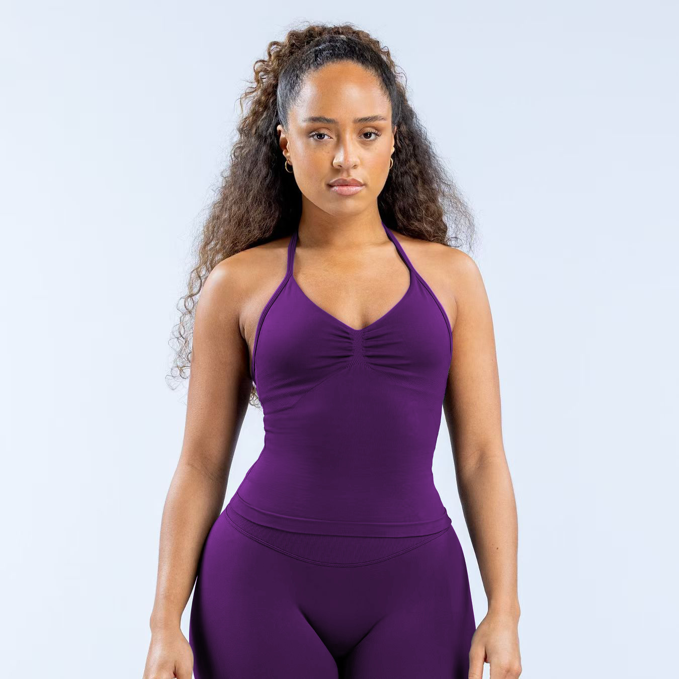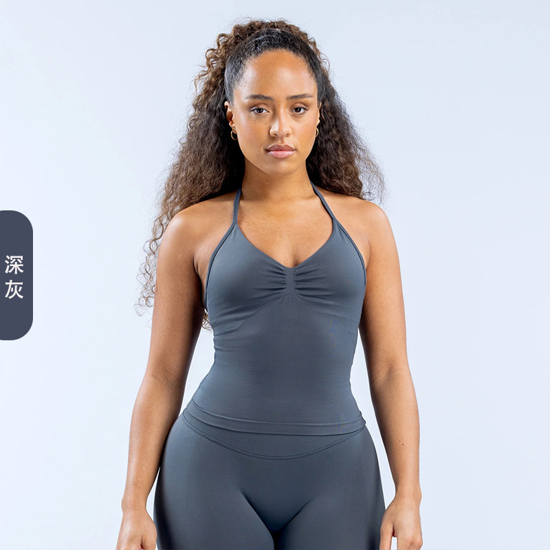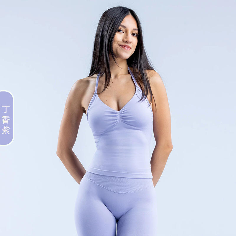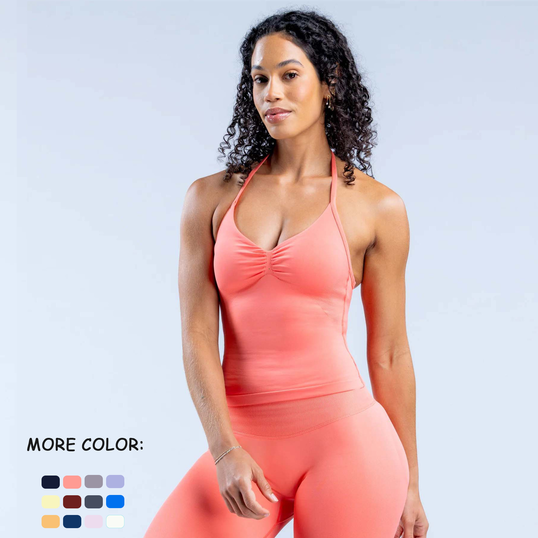 유럽과 미국의 DFYNE 가슴 패드가 있는 이음매 없는 등이 없는 홀터넥 스포츠 조끼 고탄성 매트 나일론 요가 브라 속옷스토어 가기