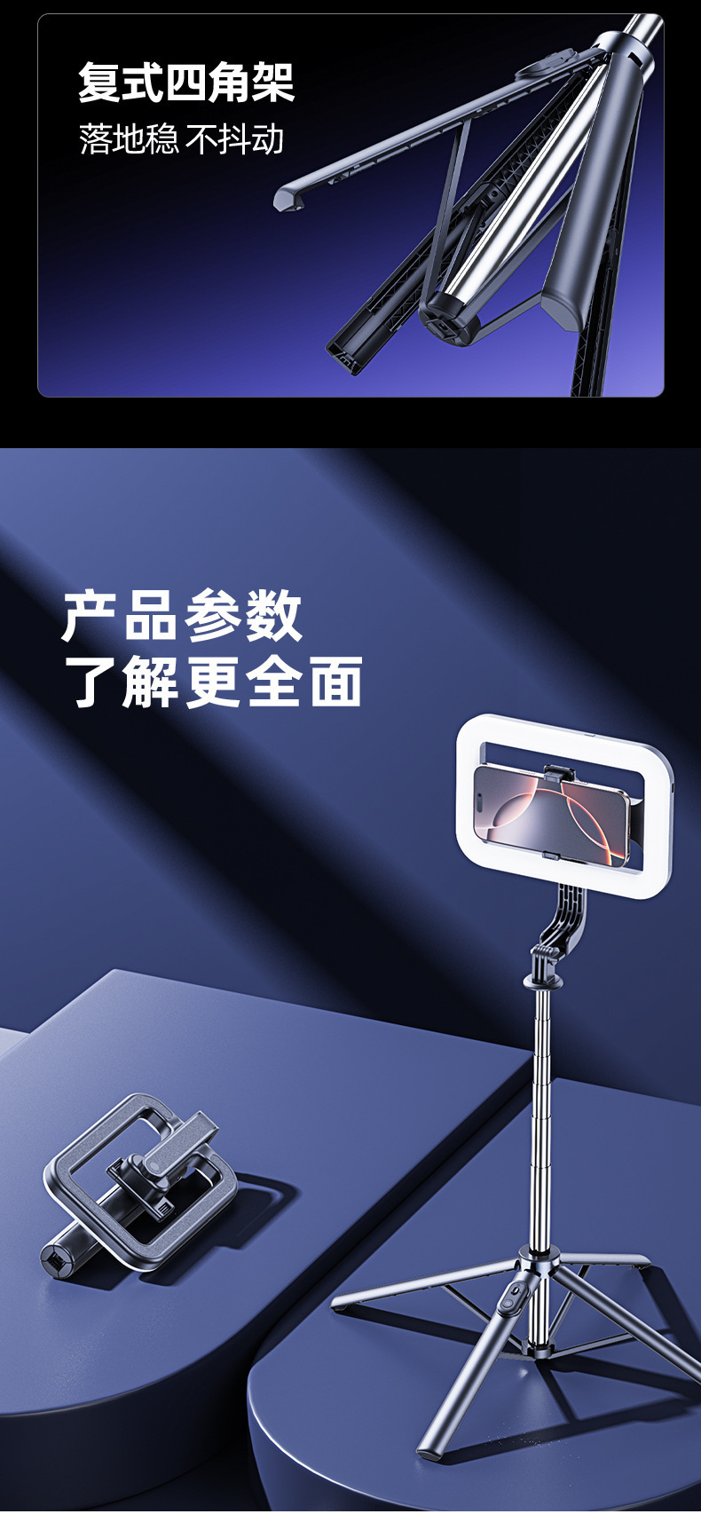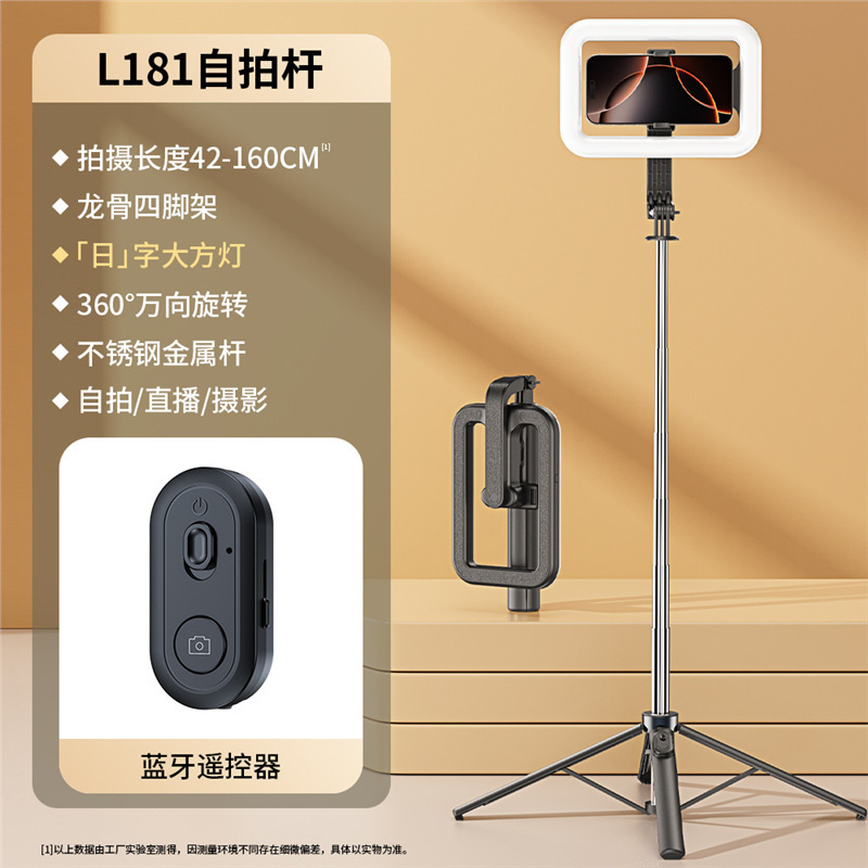 L181 크로스보더 1.8m 셀카봉 회전 대형 사각 조명 8inch 라이브 방송 보조 조명 데스크탑 텔레스코픽 라이브 방송 보조 조명