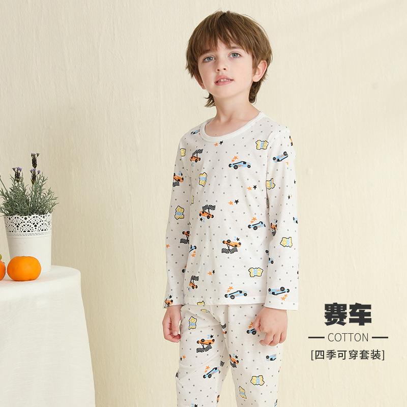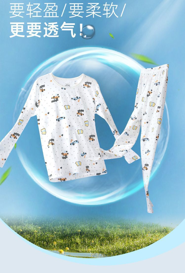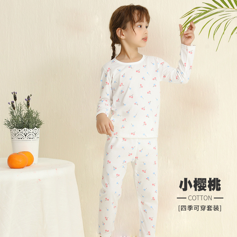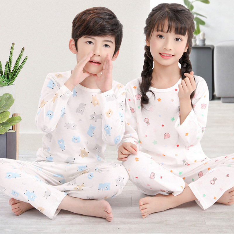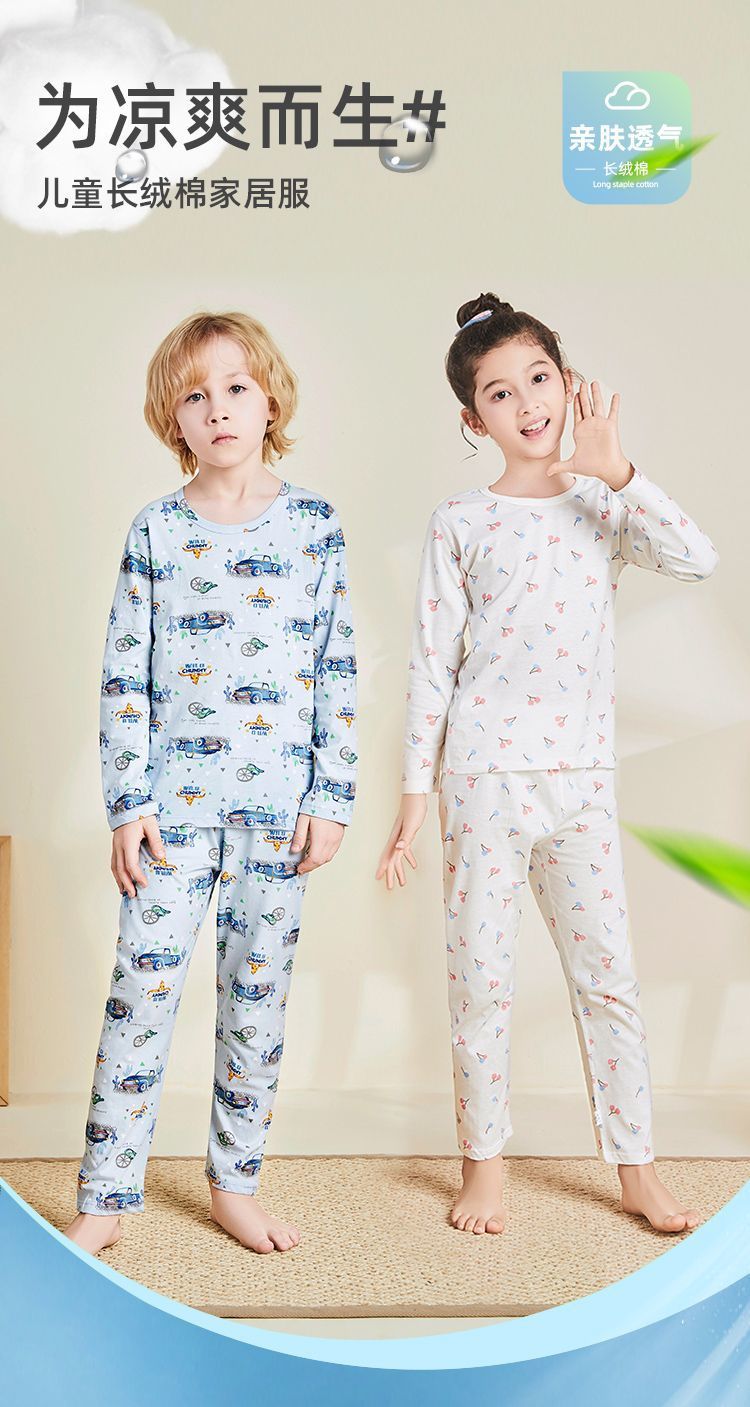 어린이 잠옷 여름 얇은 순수 면화 긴 소년과 소녀 에어컨 옷 긴팔 아기 가정 의류 정장 봄과 가을