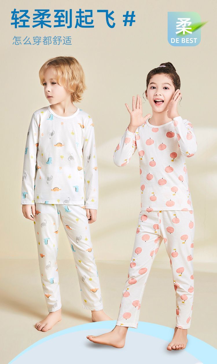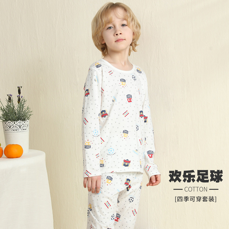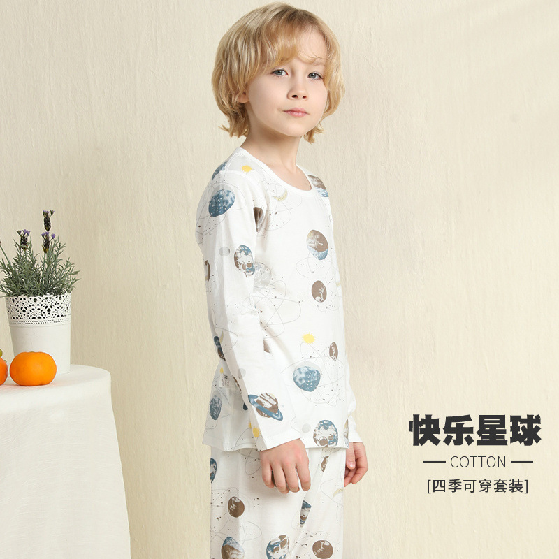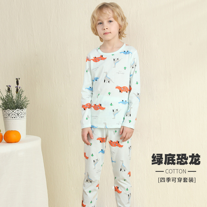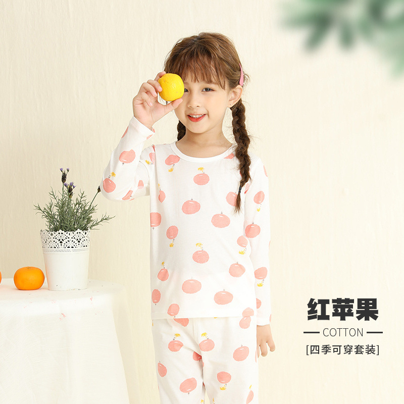 어린이 잠옷 여름 얇은 순수 면화 긴 소년과 소녀 에어컨 옷 긴팔 아기 가정 의류 정장 봄과 가을