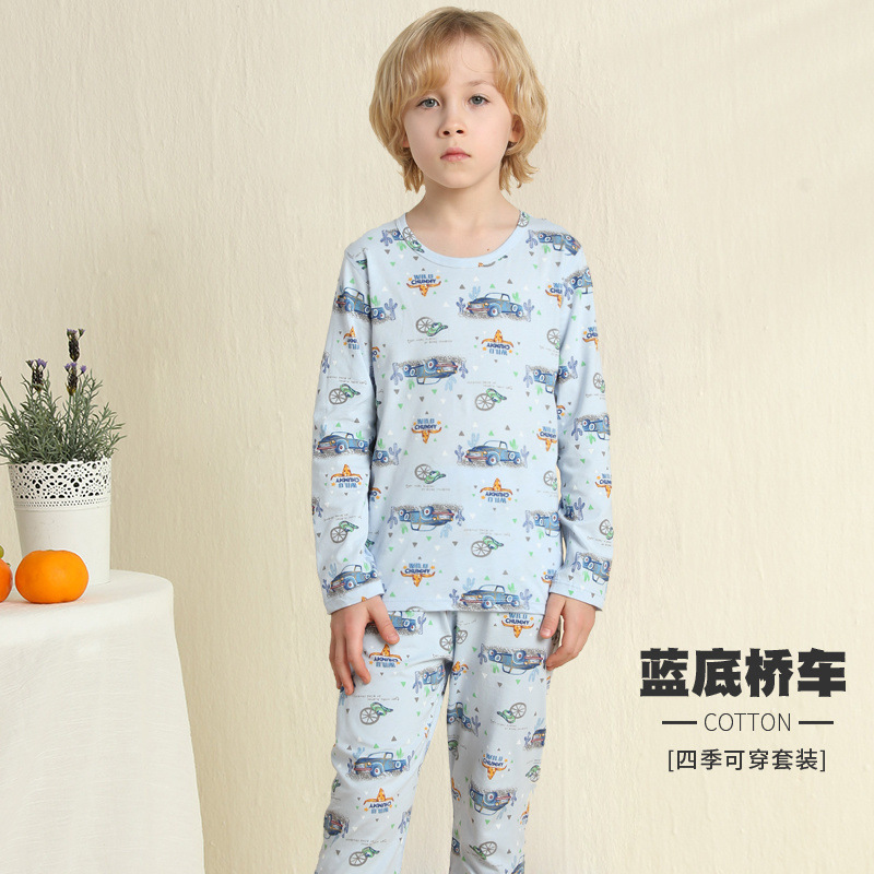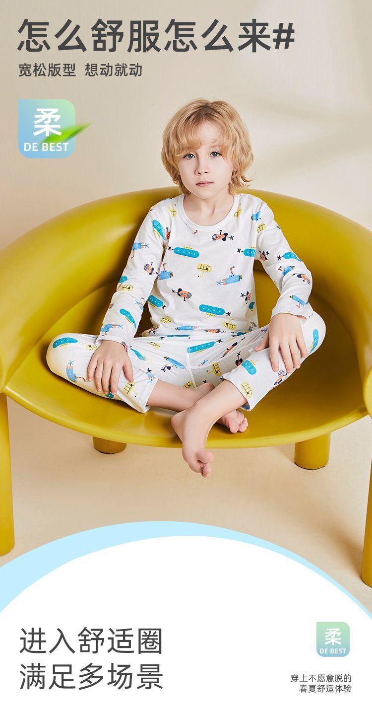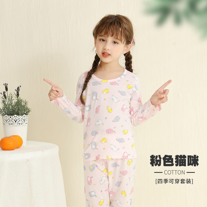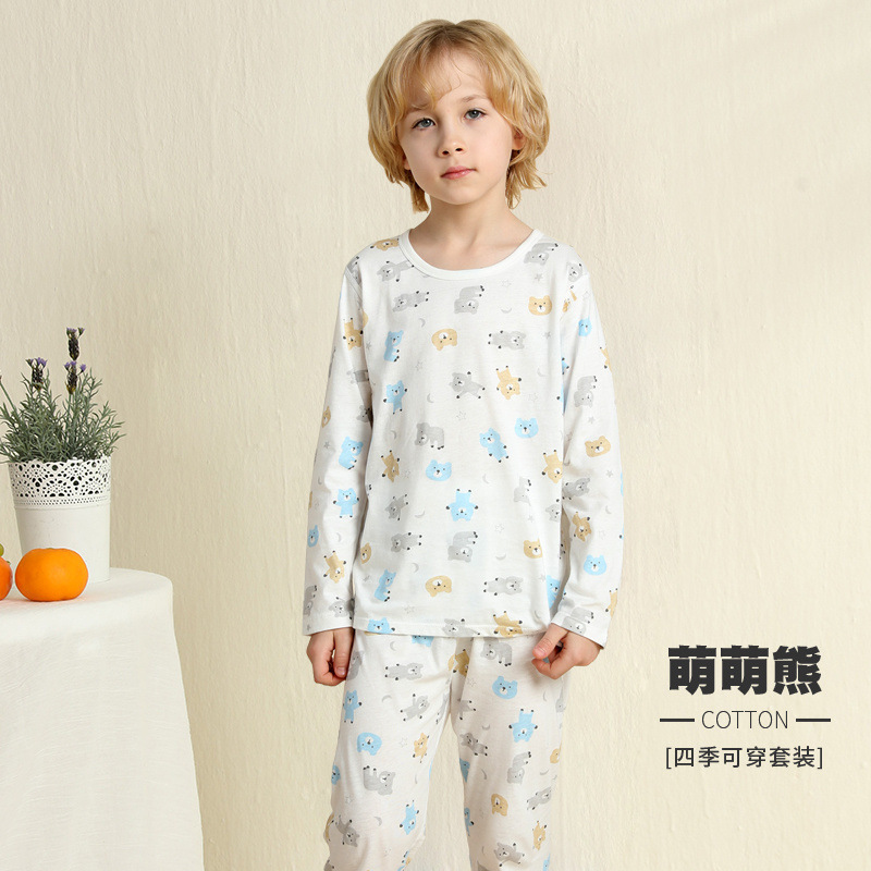 어린이 잠옷 여름 얇은 순수 면화 긴 소년과 소녀 에어컨 옷 긴팔 아기 가정 의류 정장 봄과 가을스토어 가기