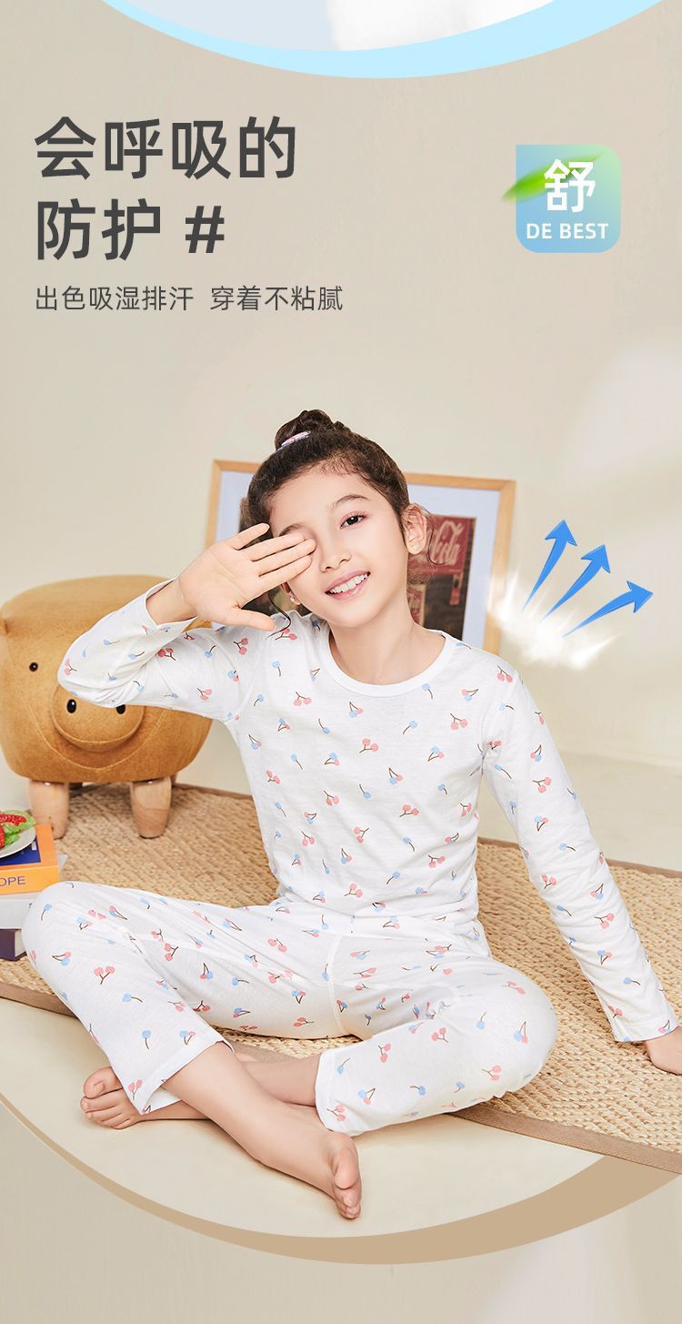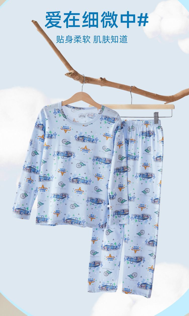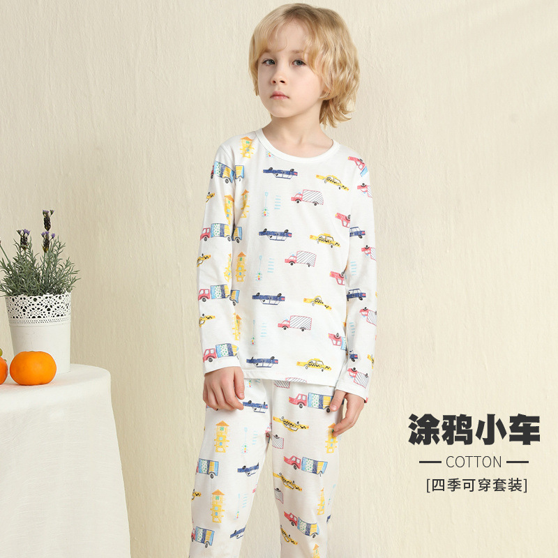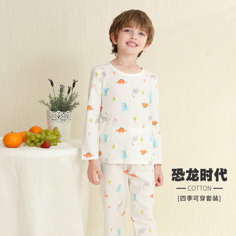어린이 잠옷 여름 얇은 순수 면화 긴 소년과 소녀 에어컨 옷 긴팔 아기 가정 의류 정장 봄과 가을스토어 가기