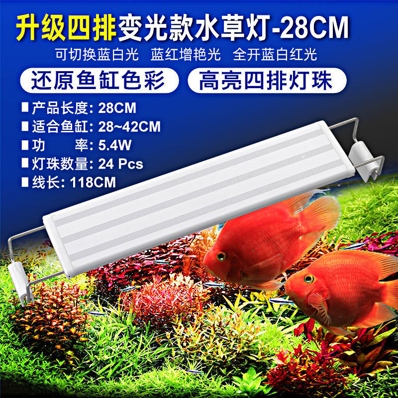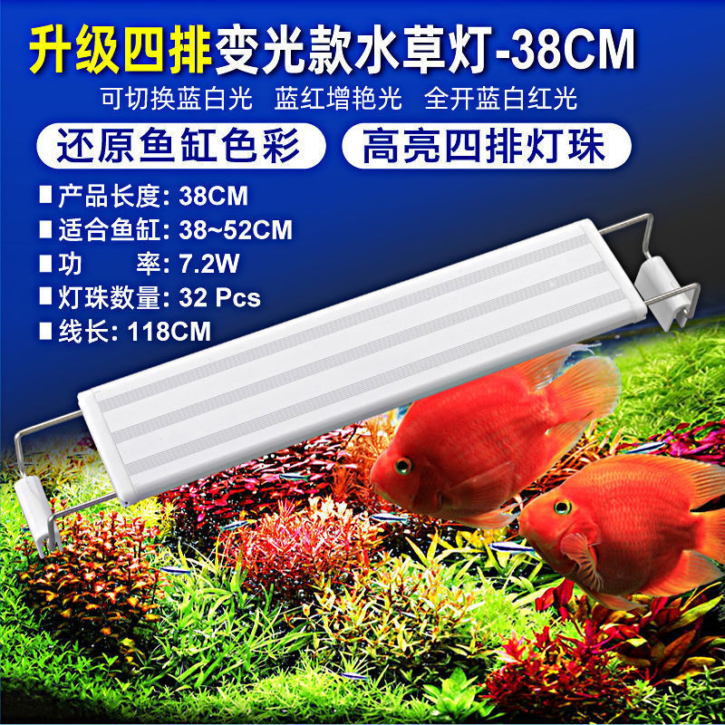 • 30-40cm 탱크에 적합한 파란색, 빨간색 및 흰색 조명의 4줄