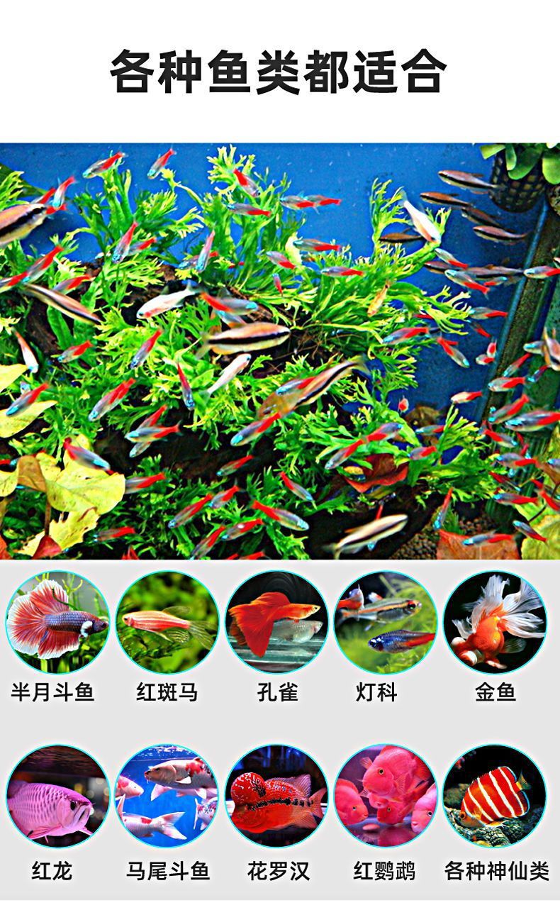 • 20-30cm 탱크에 적합한 파란색, 빨간색 및 흰색 조명의 4줄