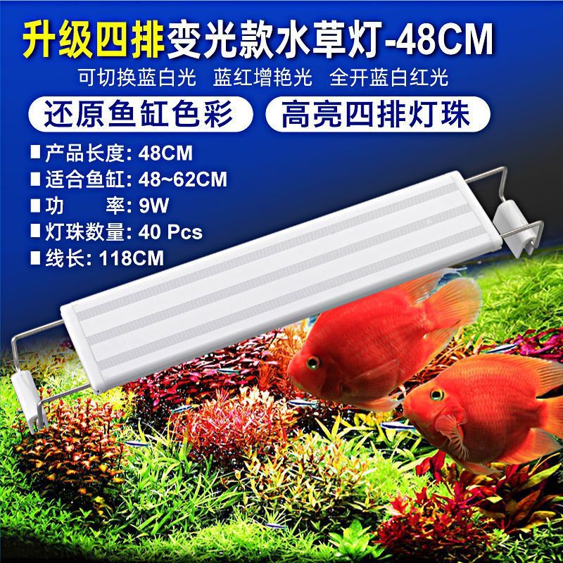 • 40-50cm 탱크에 적합한 파란색, 빨간색 및 흰색 조명의 4줄