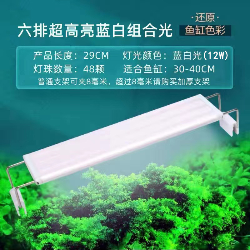 • 30-40cm 탱크에 적합한 6줄의 매우 밝은 파란색 및 흰색 조명