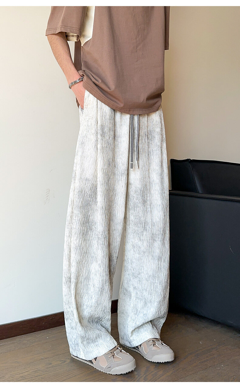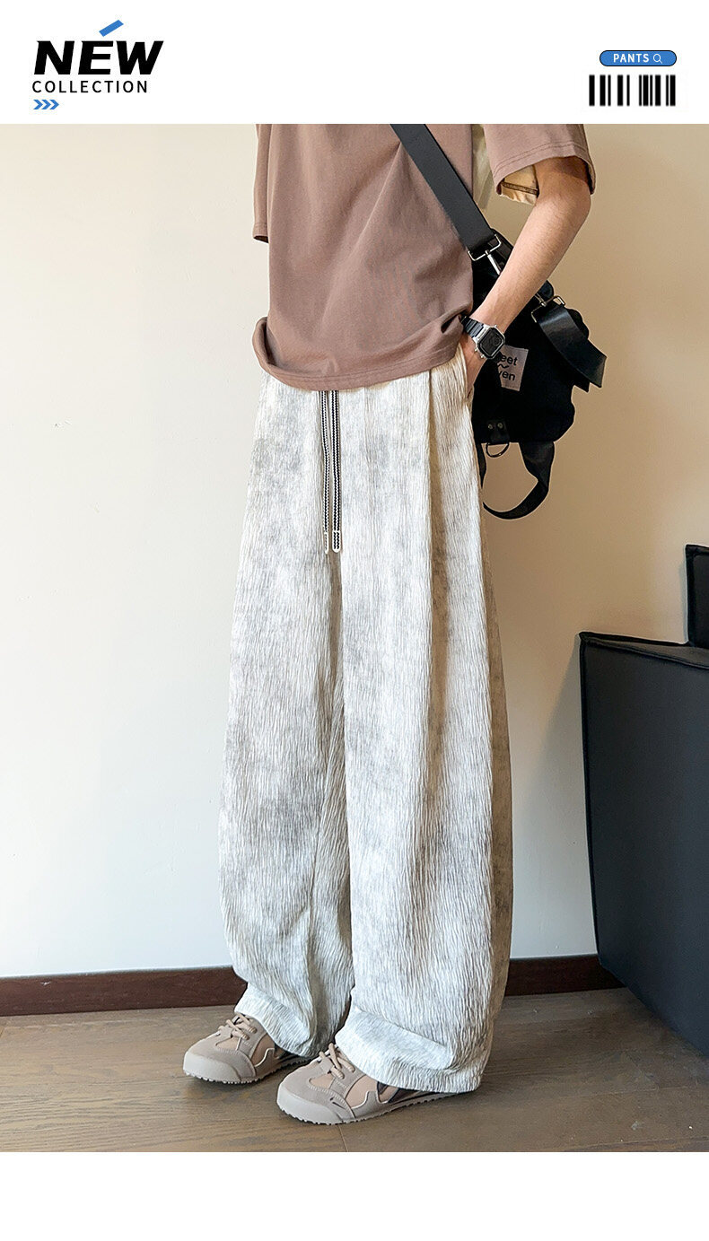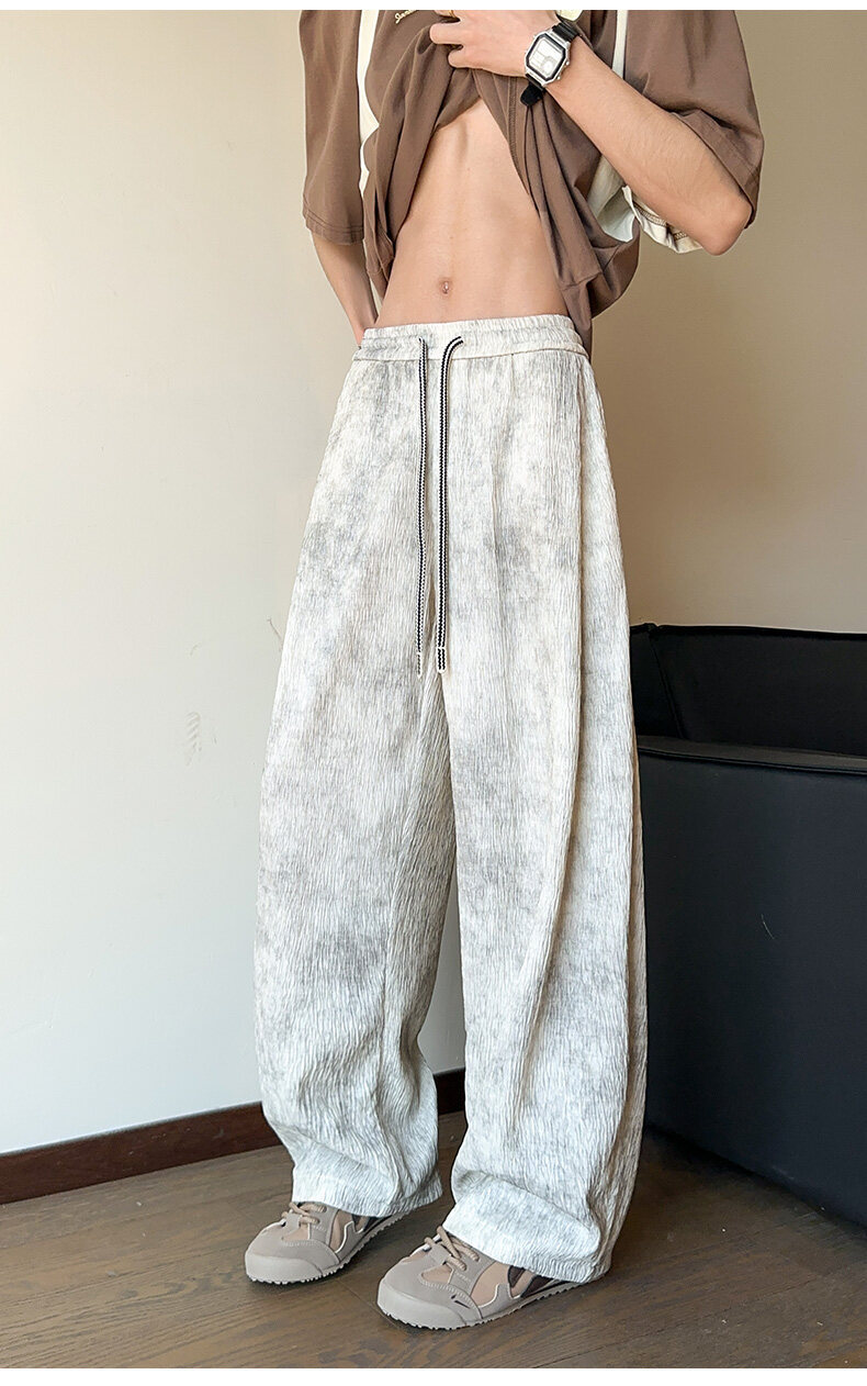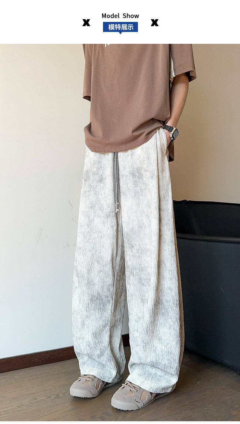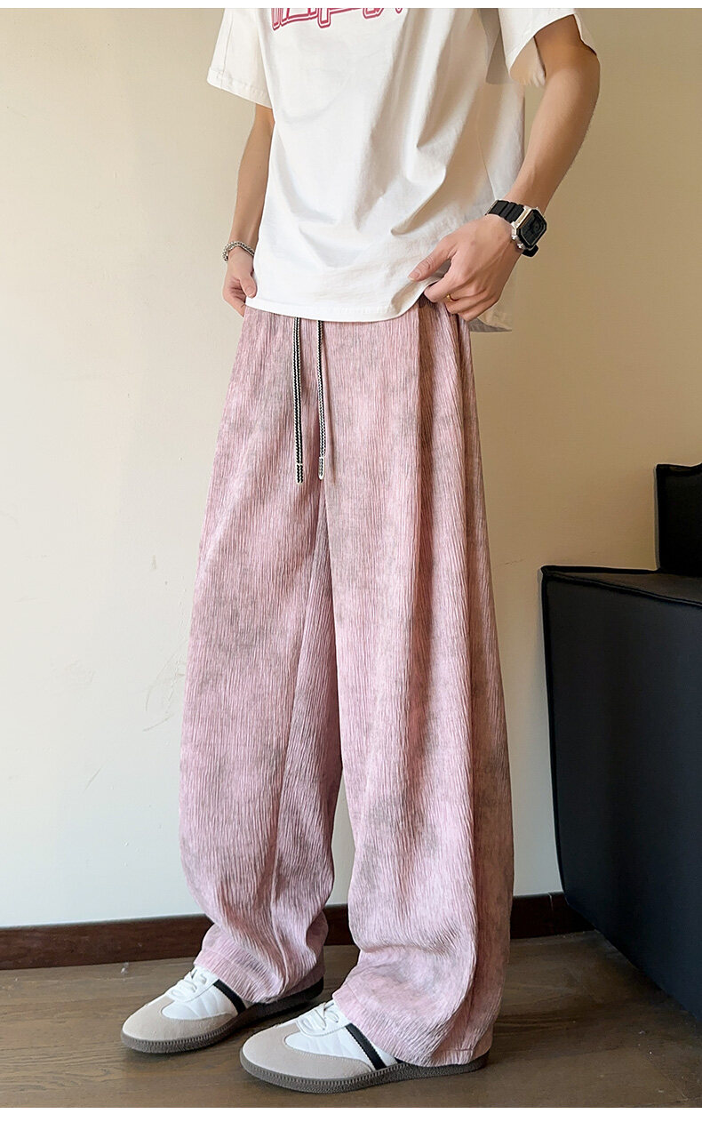 남성용 타이다이 아이스 실크 캐주얼 팬츠, 여름용 얇은 루즈한 와이드 팬츠, 남성용 통기성, 시원하고 속건성 팬츠, 남성용 스트레이트 팬츠