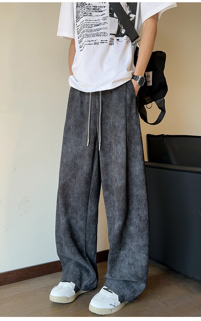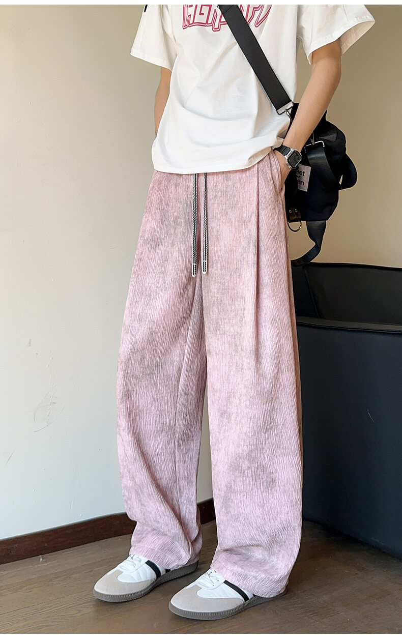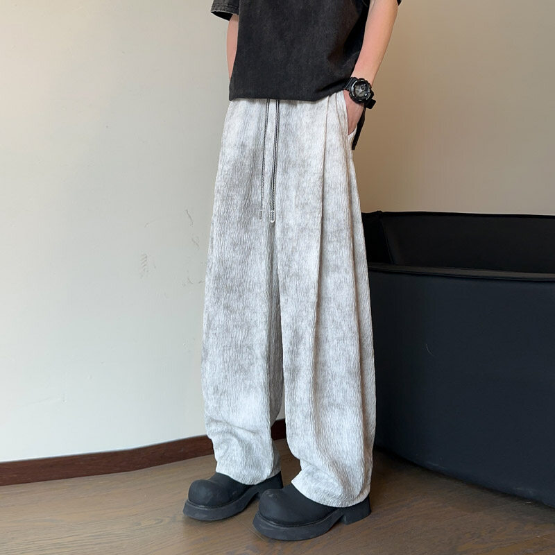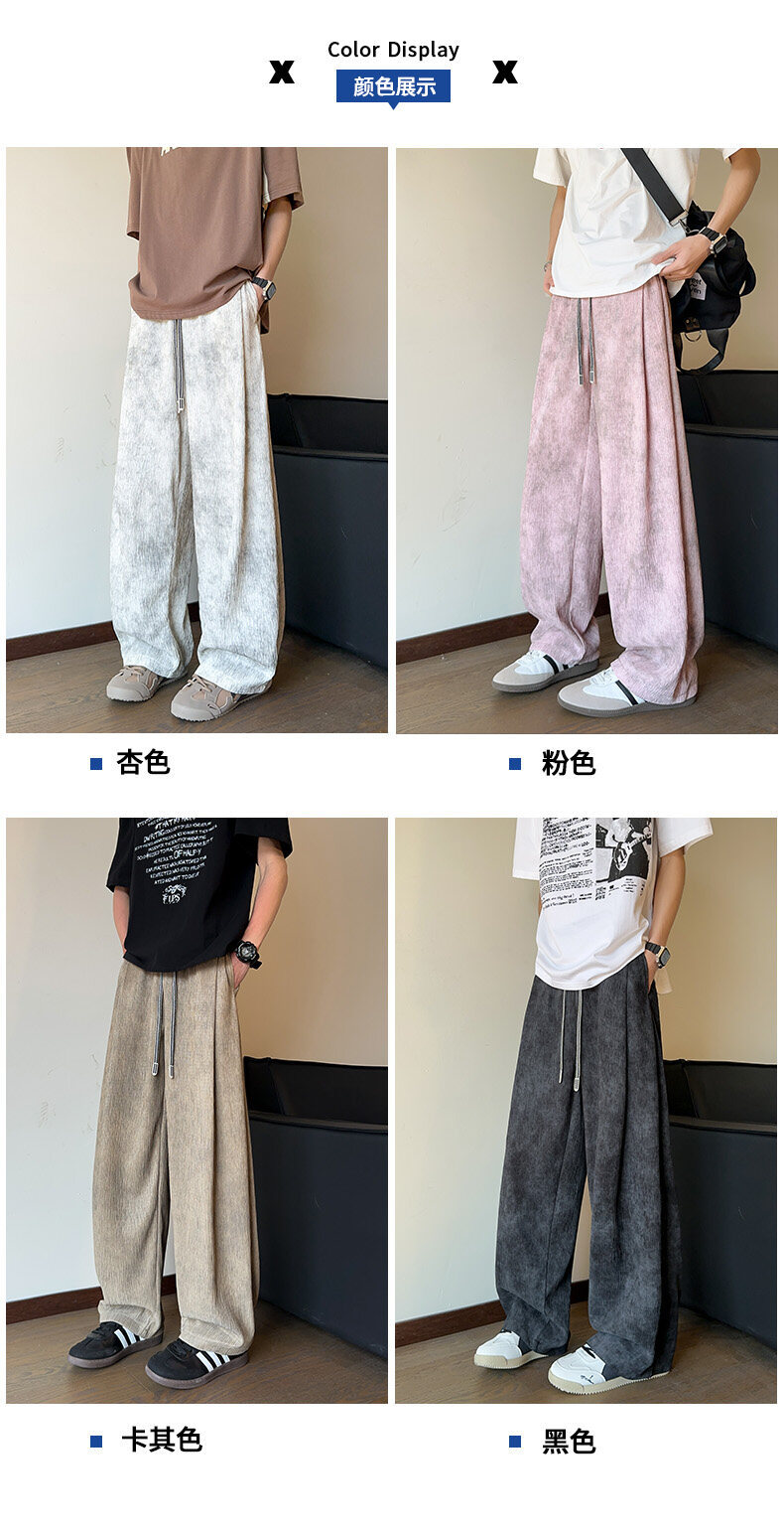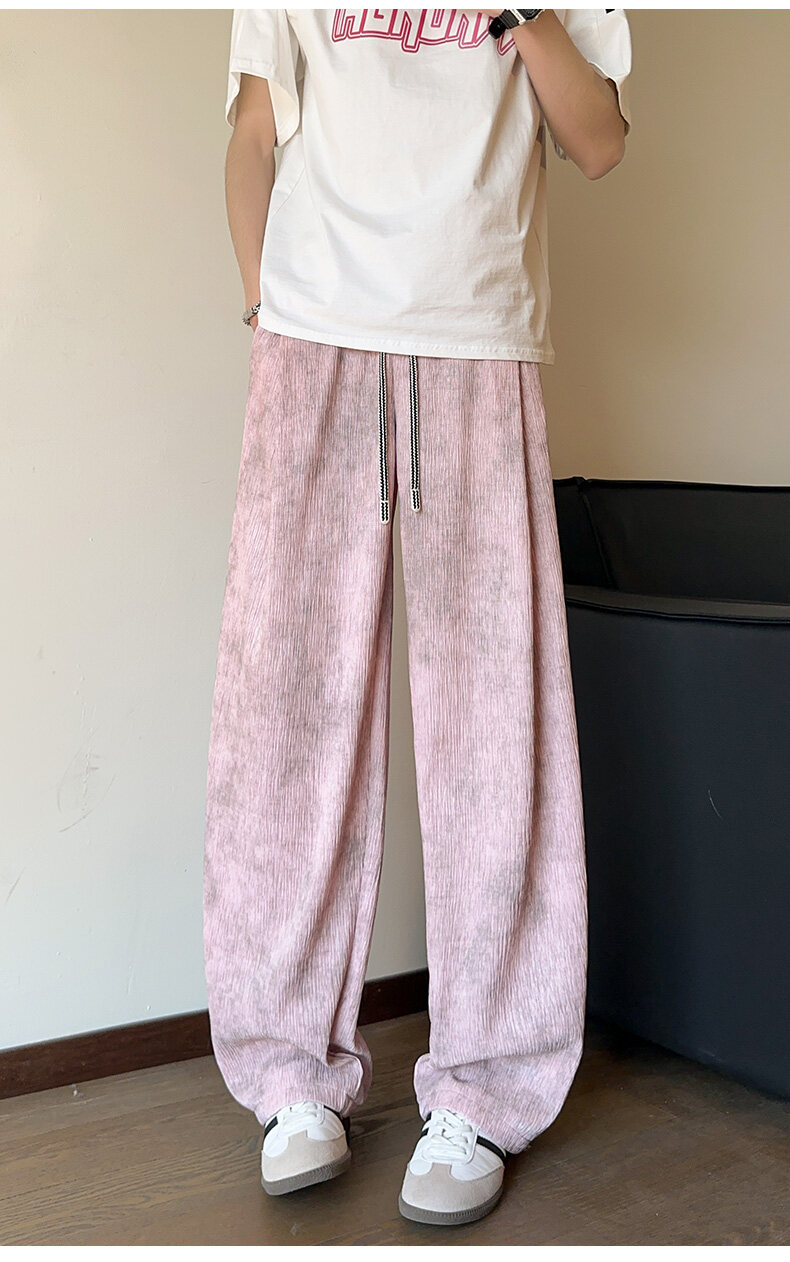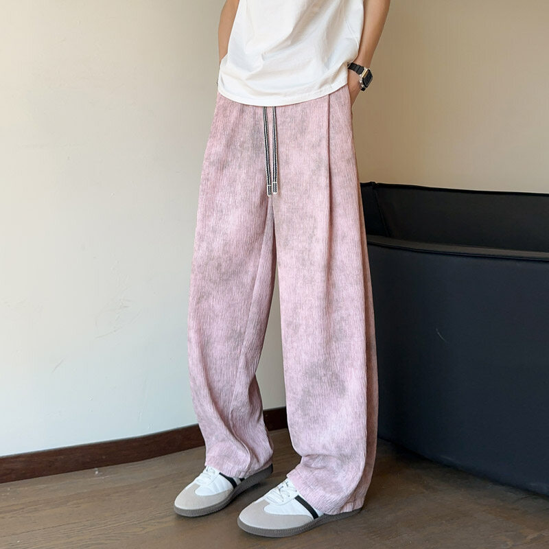 남성용 타이다이 아이스 실크 캐주얼 팬츠, 여름용 얇은 루즈한 와이드 팬츠, 남성용 통기성, 시원하고 속건성 팬츠, 남성용 스트레이트 팬츠