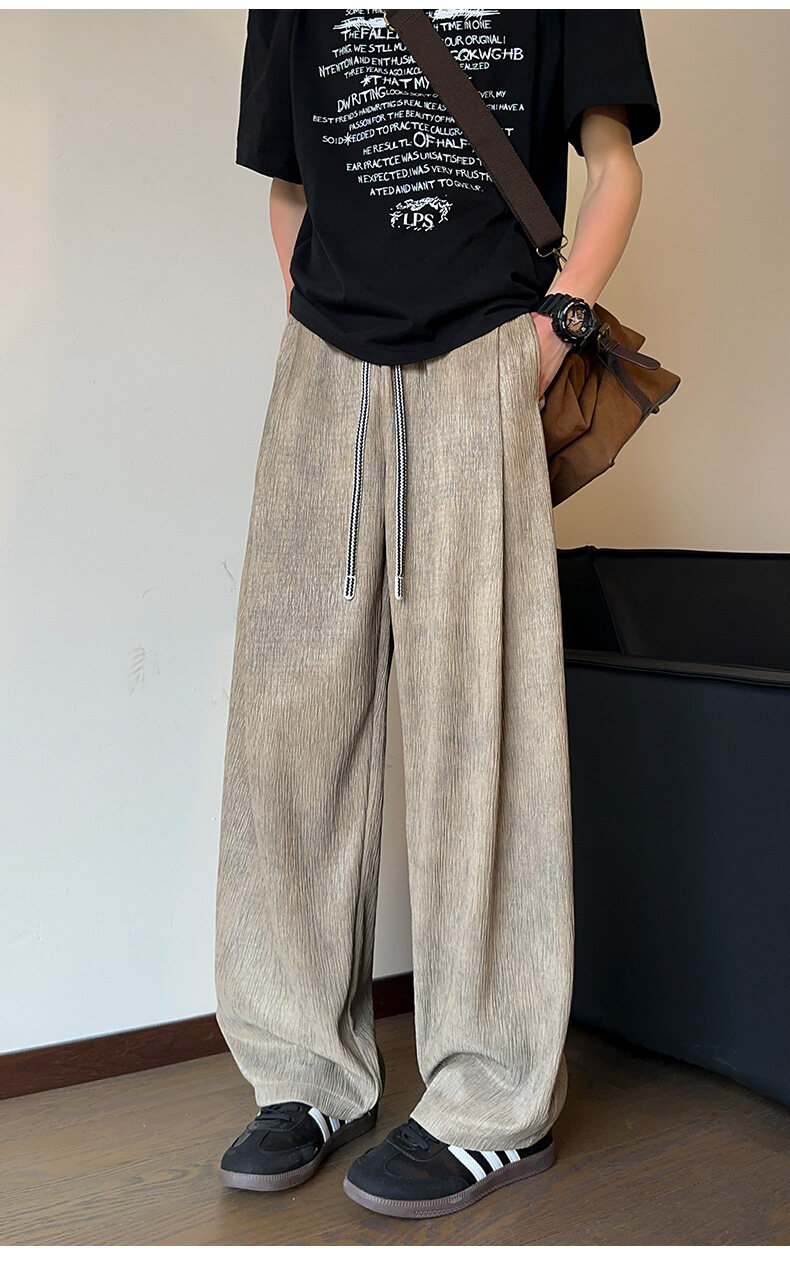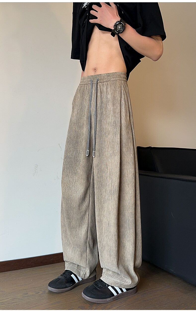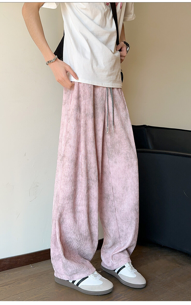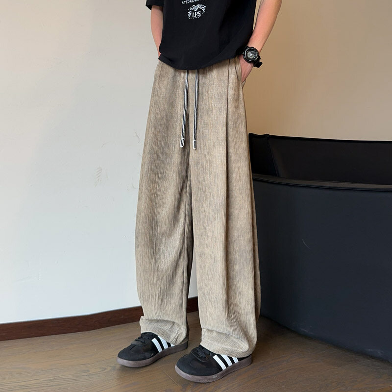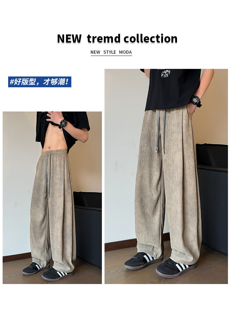 남성용 타이다이 아이스 실크 캐주얼 팬츠, 여름용 얇은 루즈한 와이드 팬츠, 남성용 통기성, 시원하고 속건성 팬츠, 남성용 스트레이트 팬츠