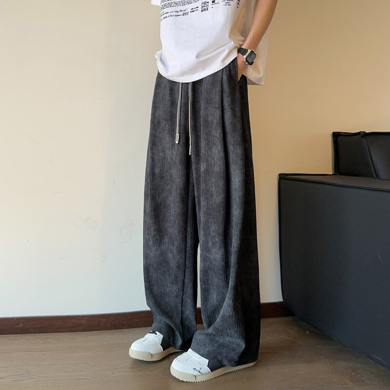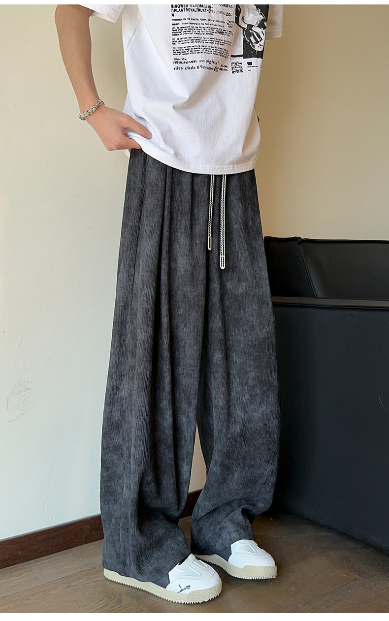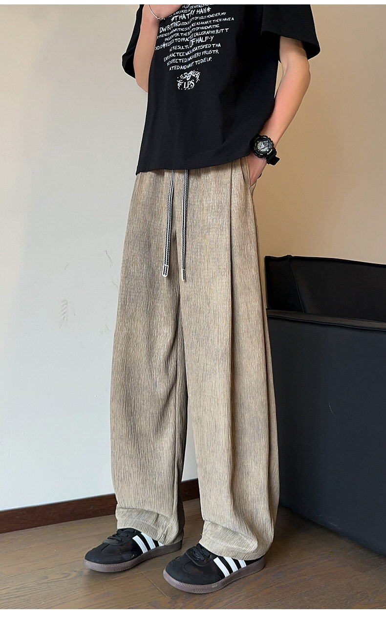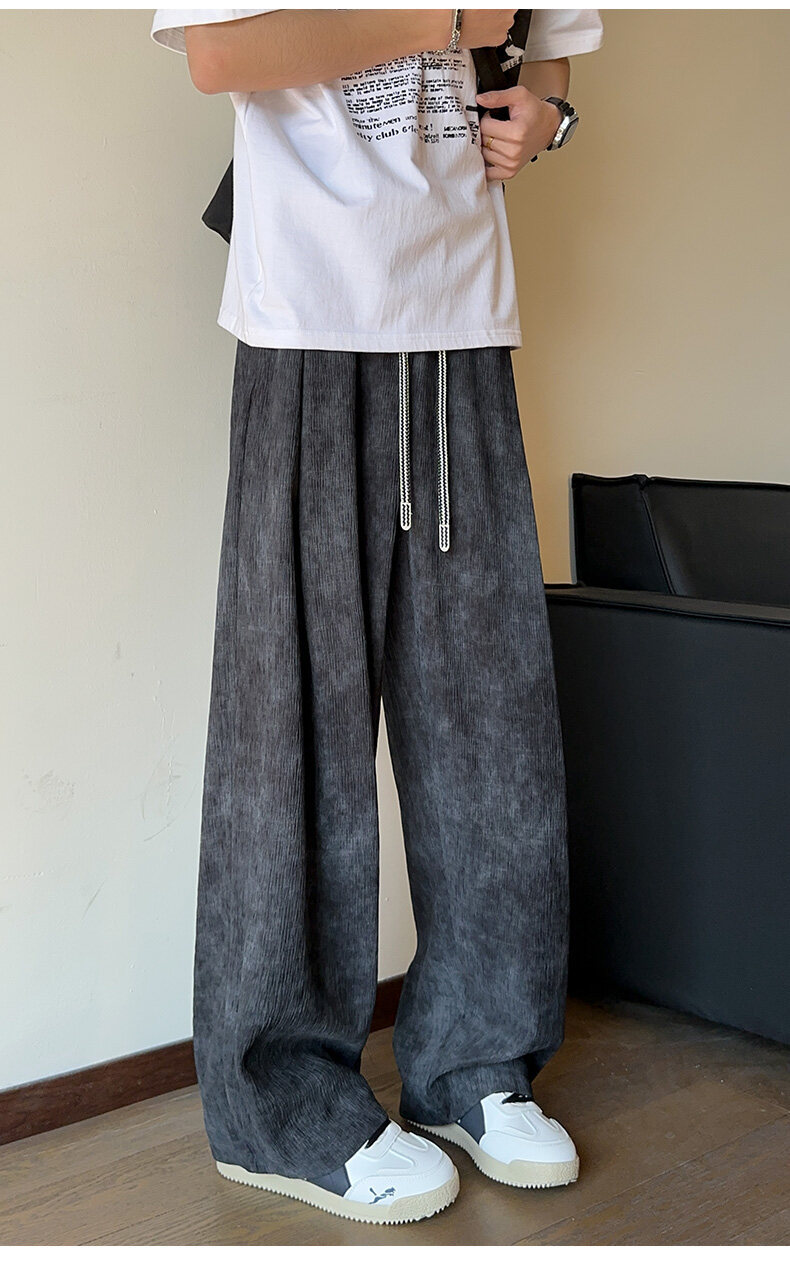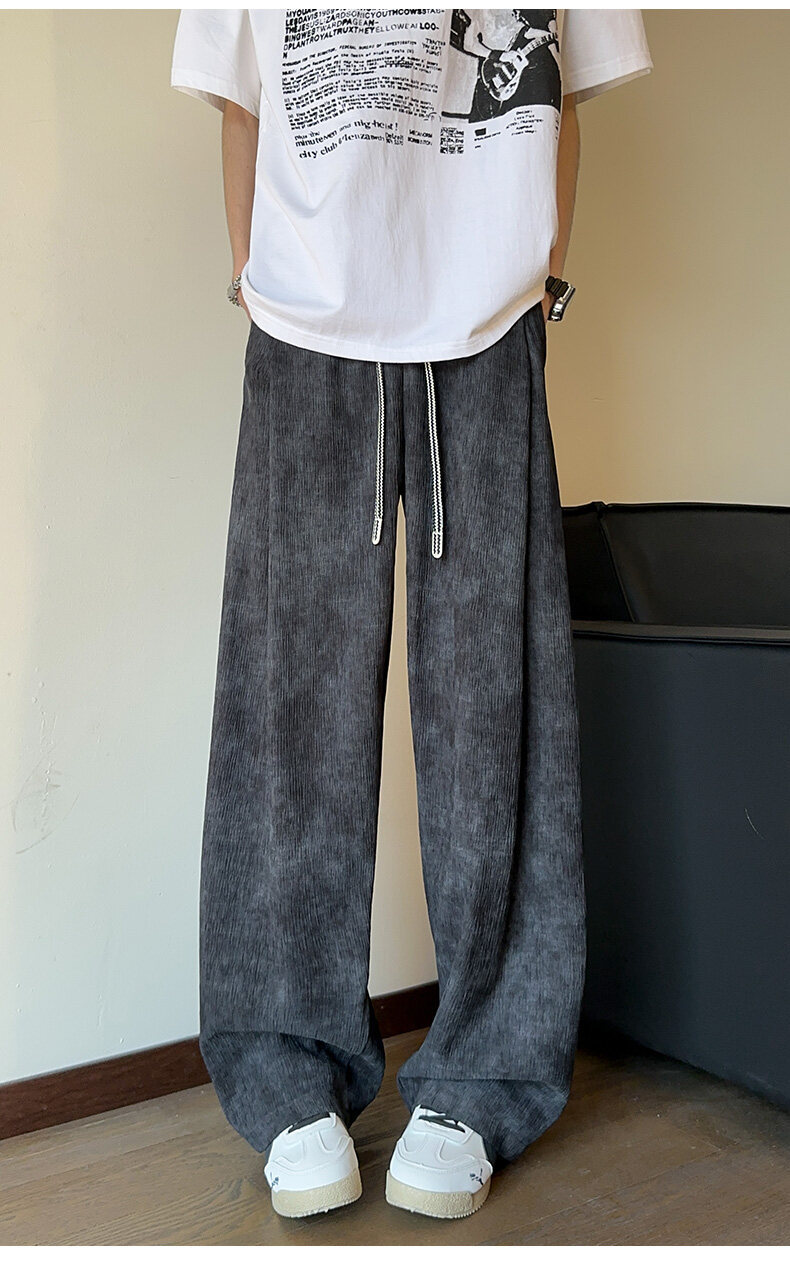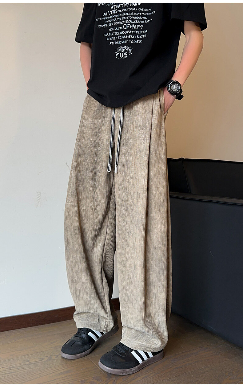 남성용 타이다이 아이스 실크 캐주얼 팬츠, 여름용 얇은 루즈한 와이드 팬츠, 남성용 통기성, 시원하고 속건성 팬츠, 남성용 스트레이트 팬츠