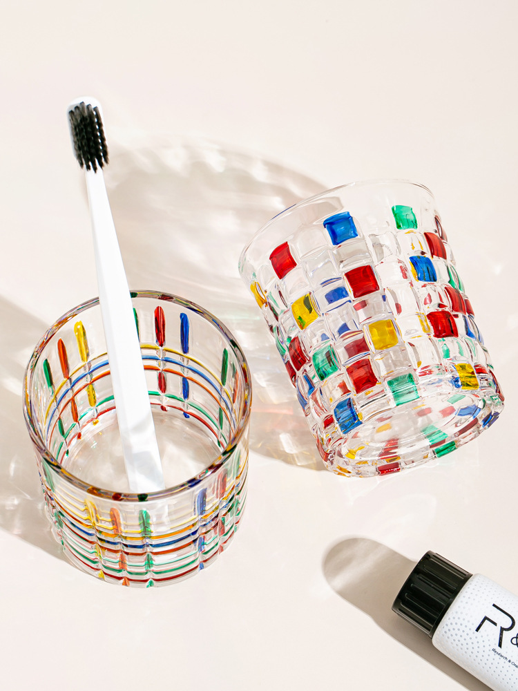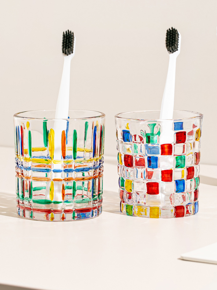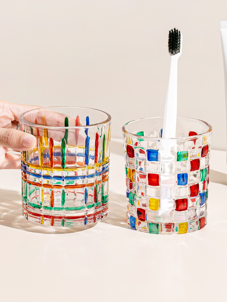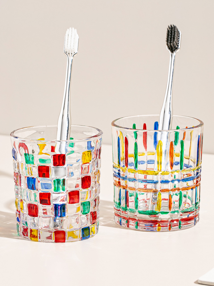 컬러 유리 구강 세정제 컵, 가벼운 고급스러운 복고풍 칫솔 컵, 커플 칫솔 컵, 가정 기숙사 세면 컵스토어 가기