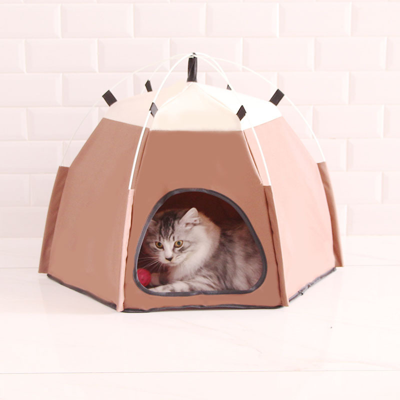 • 갈색 육각형 애완동물 텐트