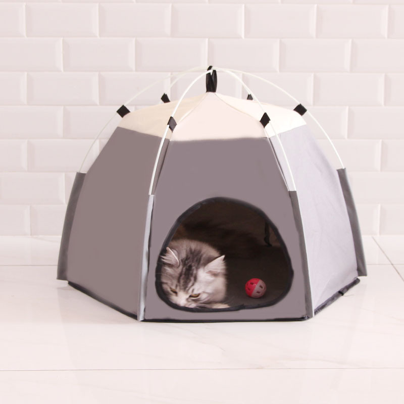 • 회색 육각형 애완동물 텐트