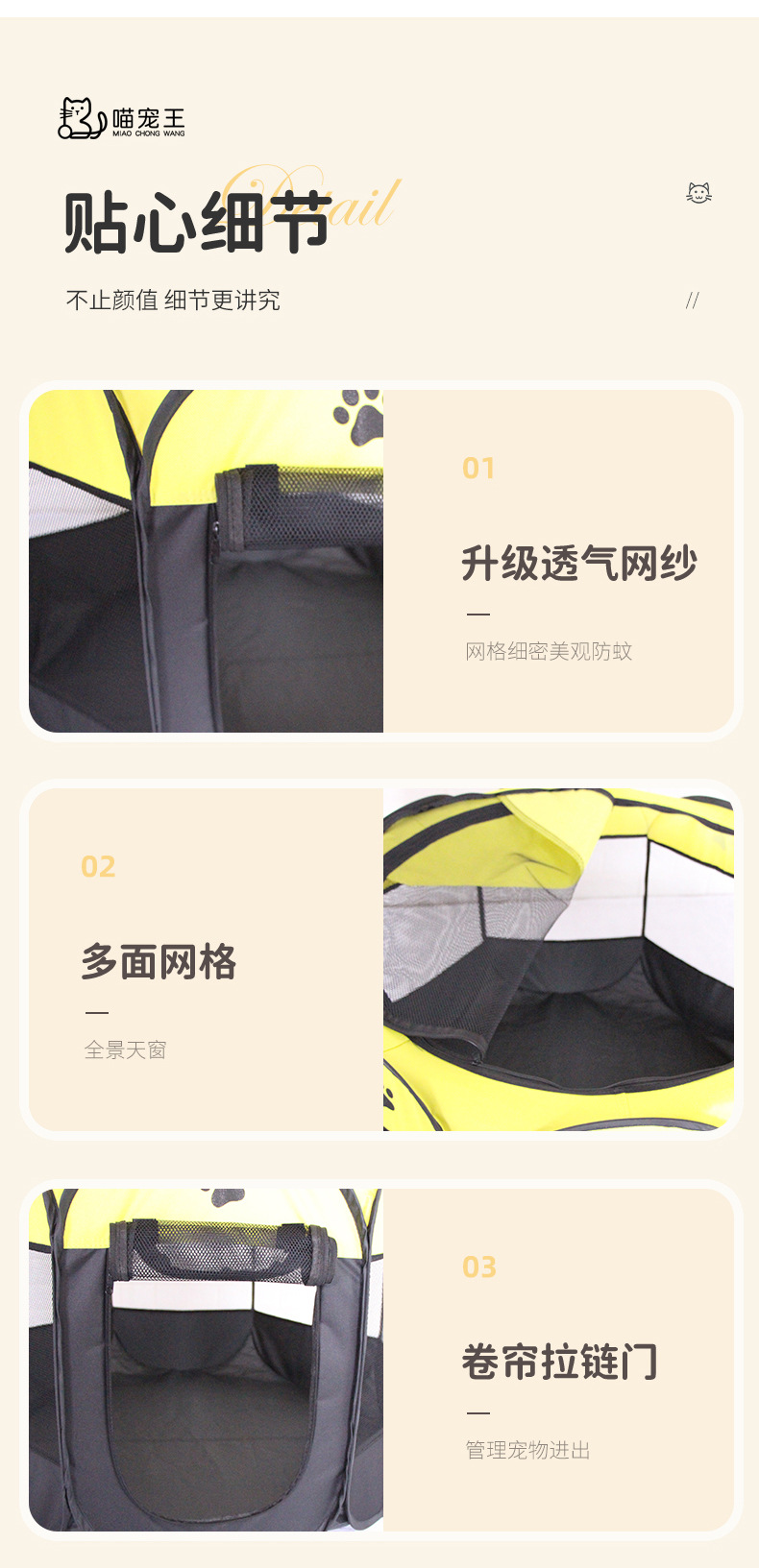 엄선된 고양이 팔각형 텐트 울타리 접이식 두꺼운 긁힘 방지 격리실 애완동물 전용 개 산란 둥지 고양이 산란실스토어 가기