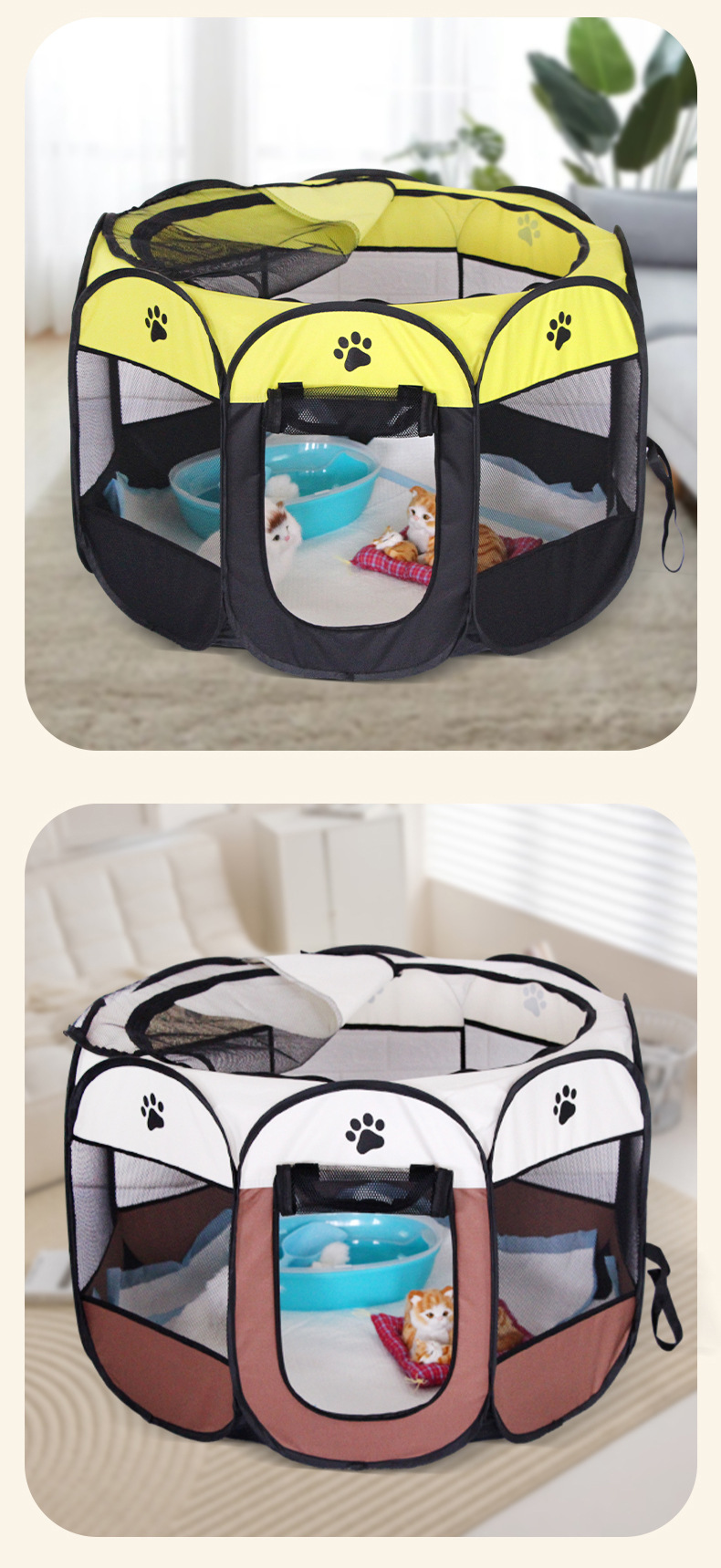 • 노란색 육각형 애완동물 텐트