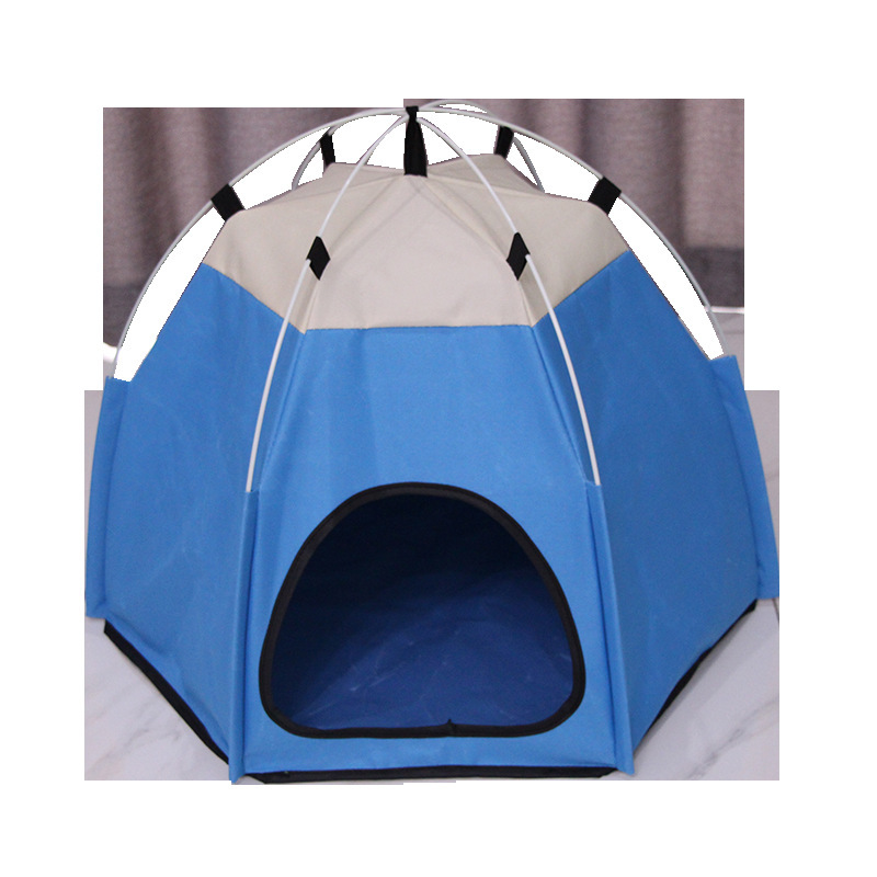 • 파란색 육각형 애완동물 텐트
