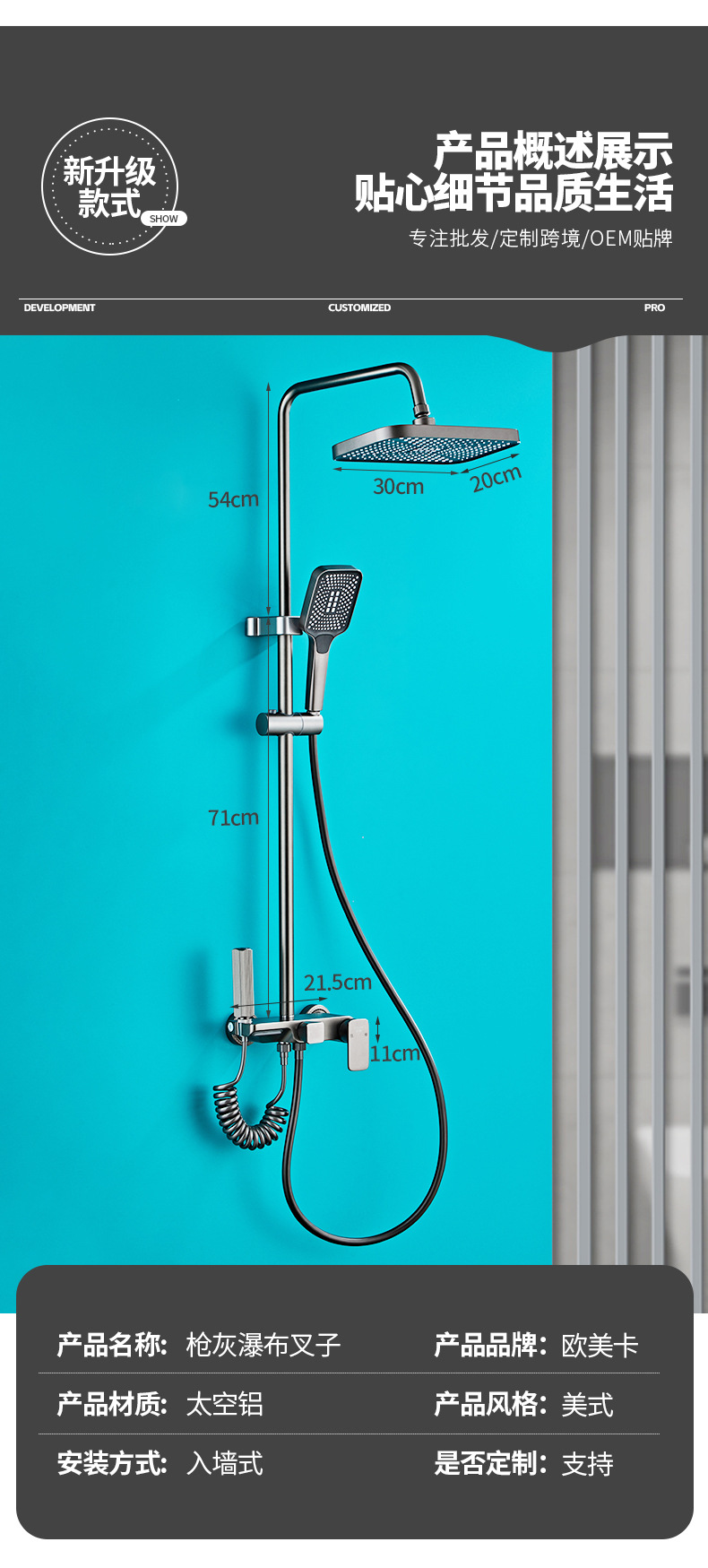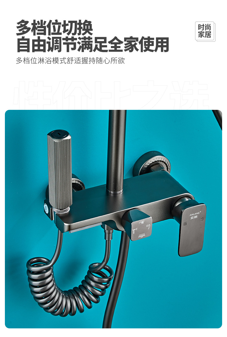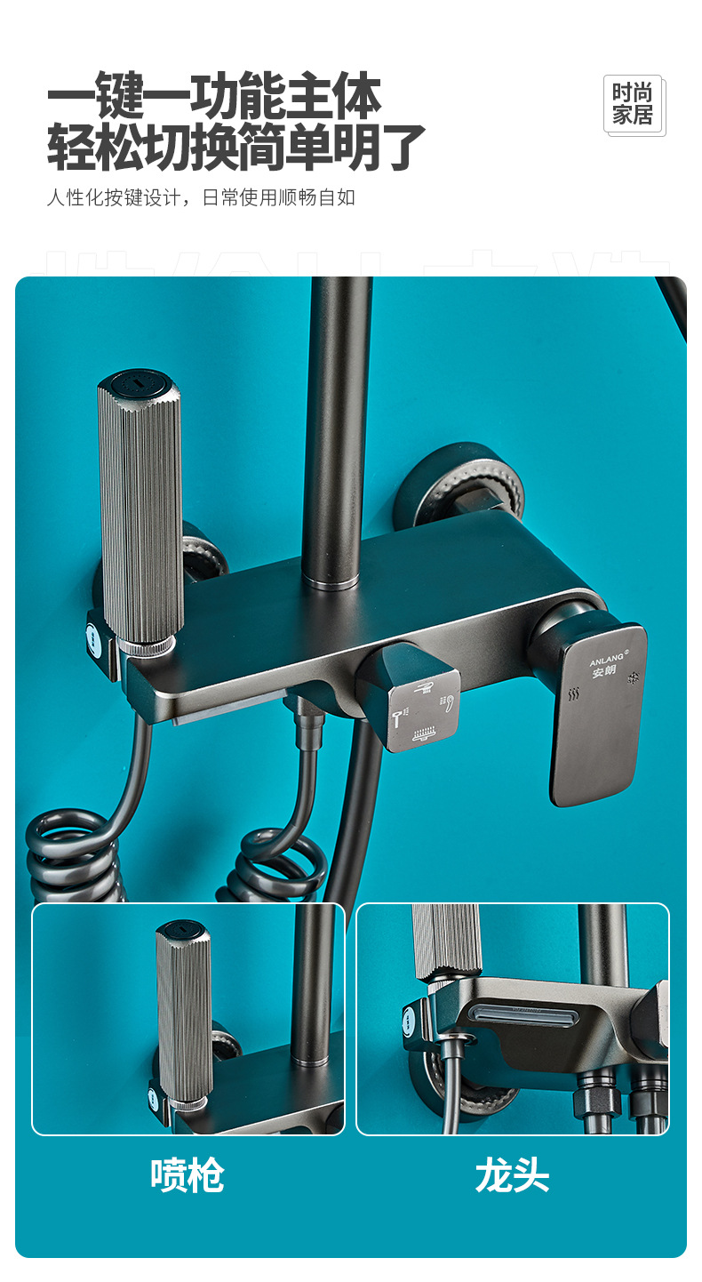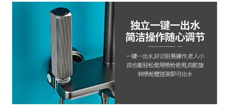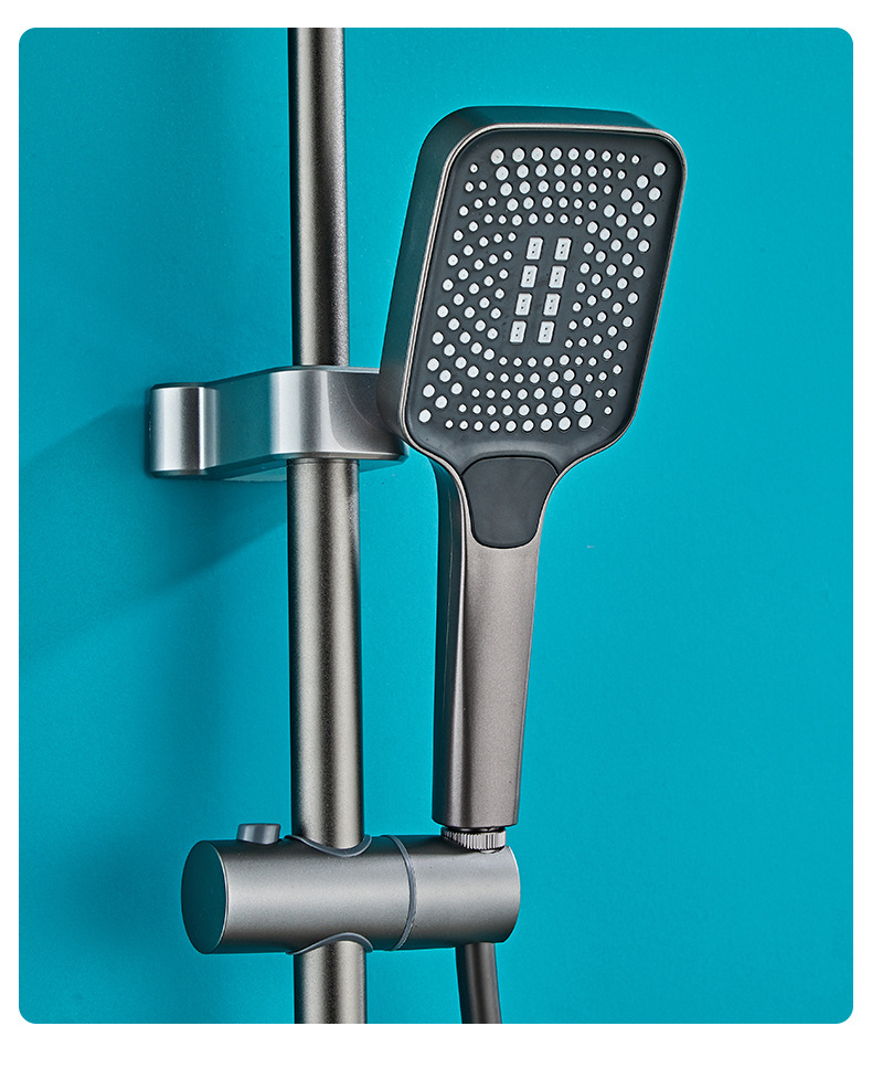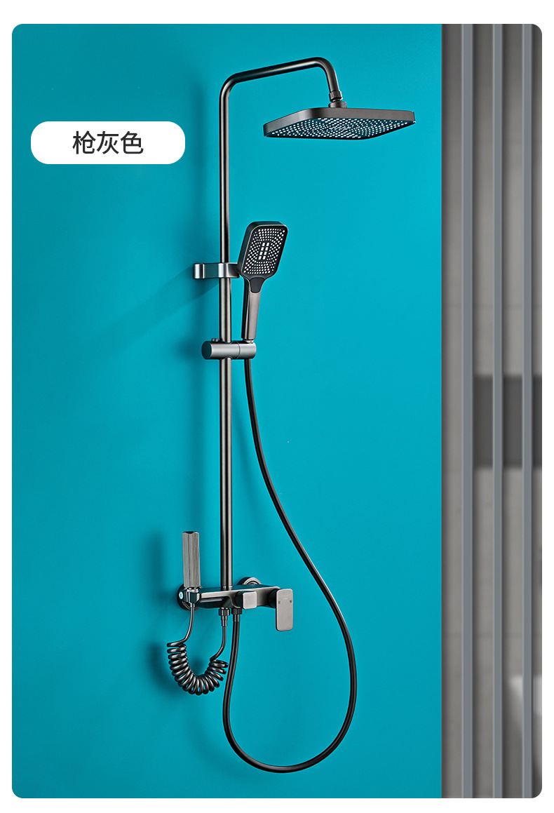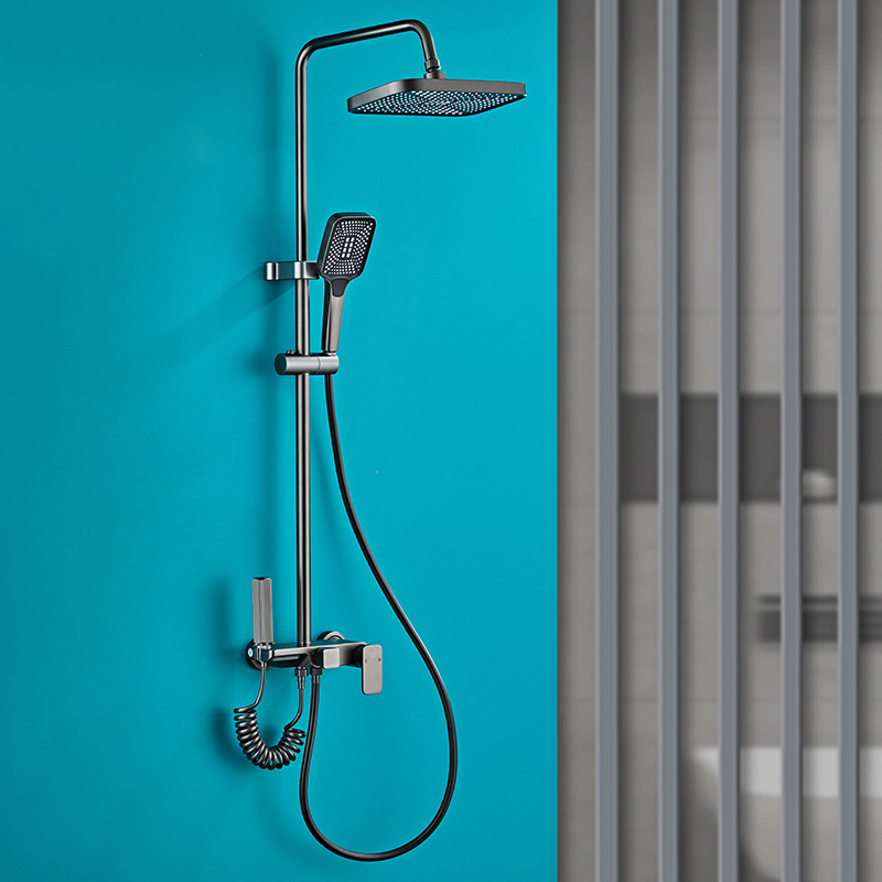 벽걸이형 스페이스 알루미늄 핸드헬드 샤워기 세트, 가압식 레인 샤워 세트, 건그레이 폭포형 샤워기 풀세트