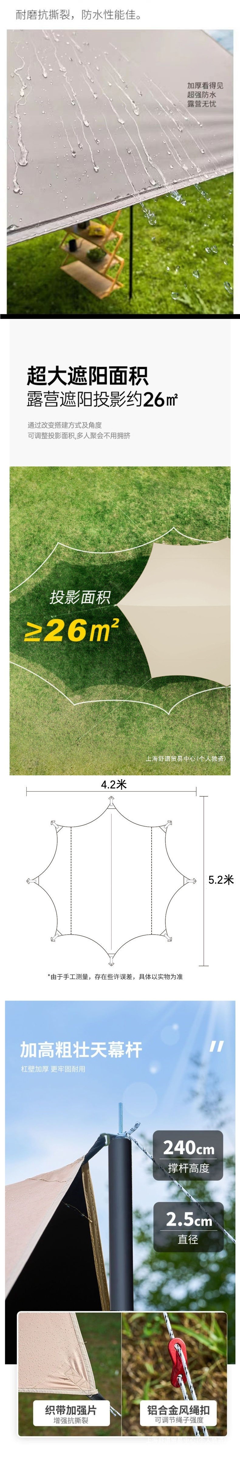 • (업그레이드된 팔각형 비닐) 카키 5.2* 4.2m