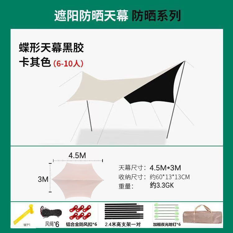 나비 캐노피 텐트 비닐 태양 보호 야외 피크닉 휴대용 두꺼운 방수 캠핑 단열 육각형 천막스토어 가기