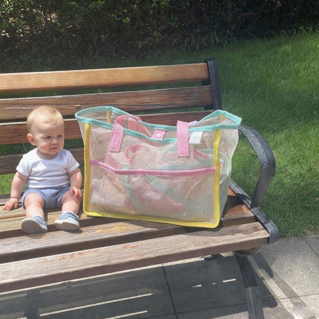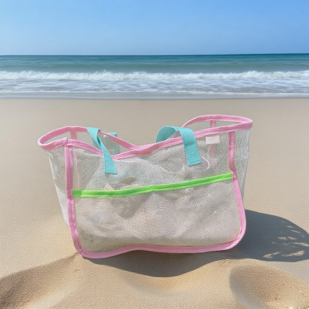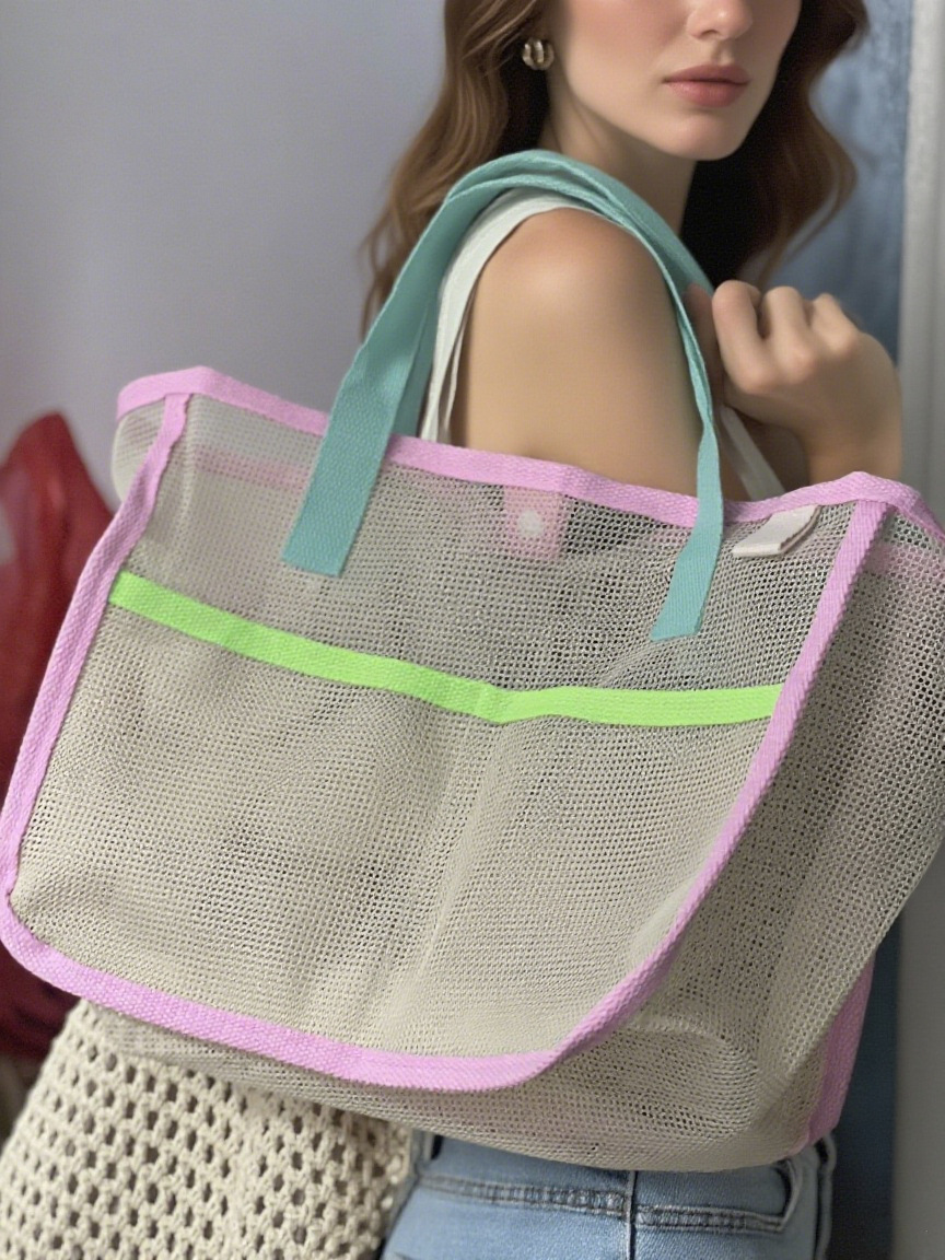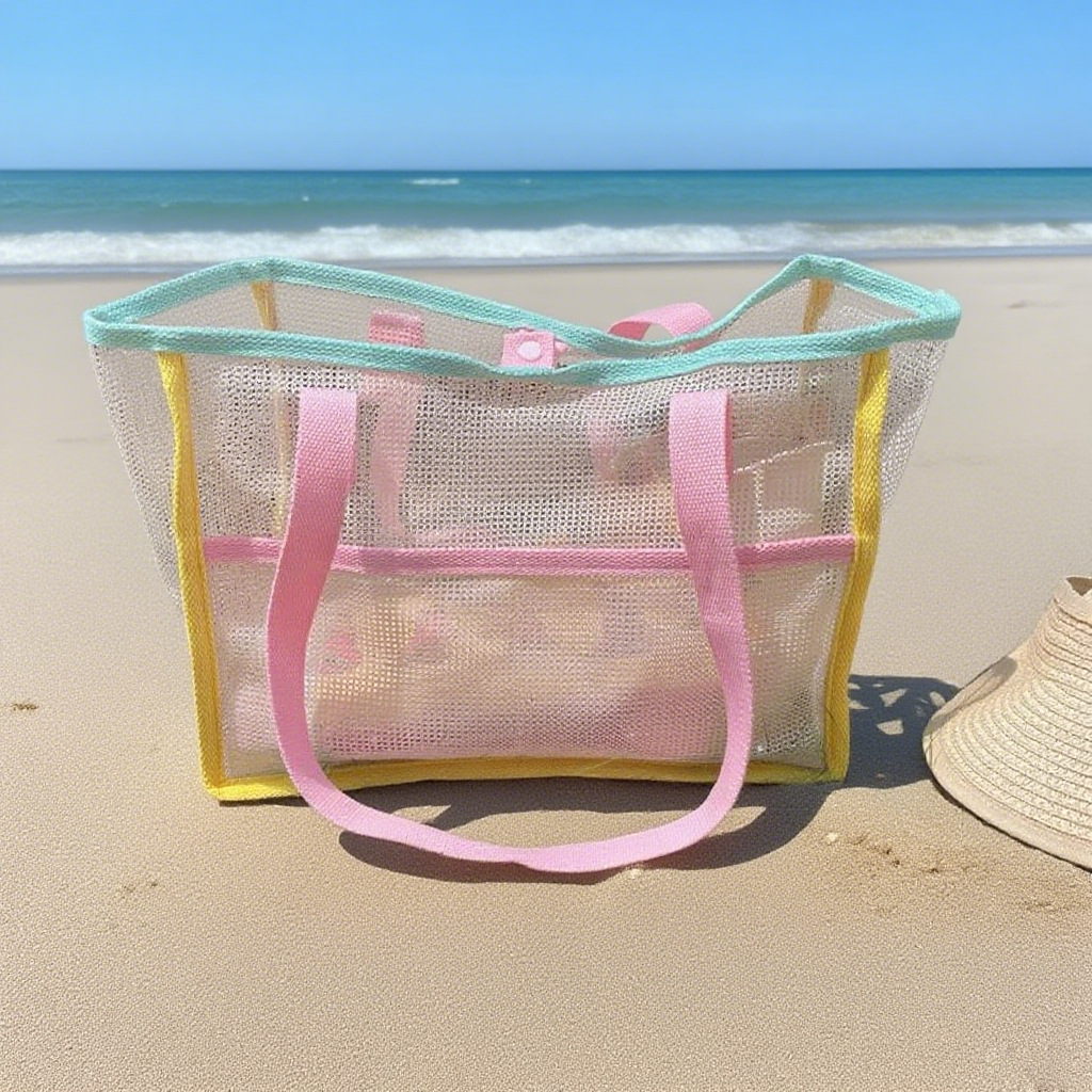 한국어 대비 색상 메쉬 비치 백 휴대용 대용량 해변 휴가 수영 가방 여행 가방 보관 가방