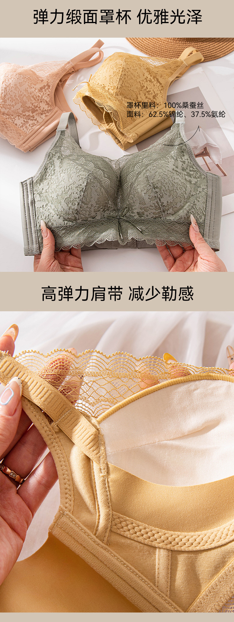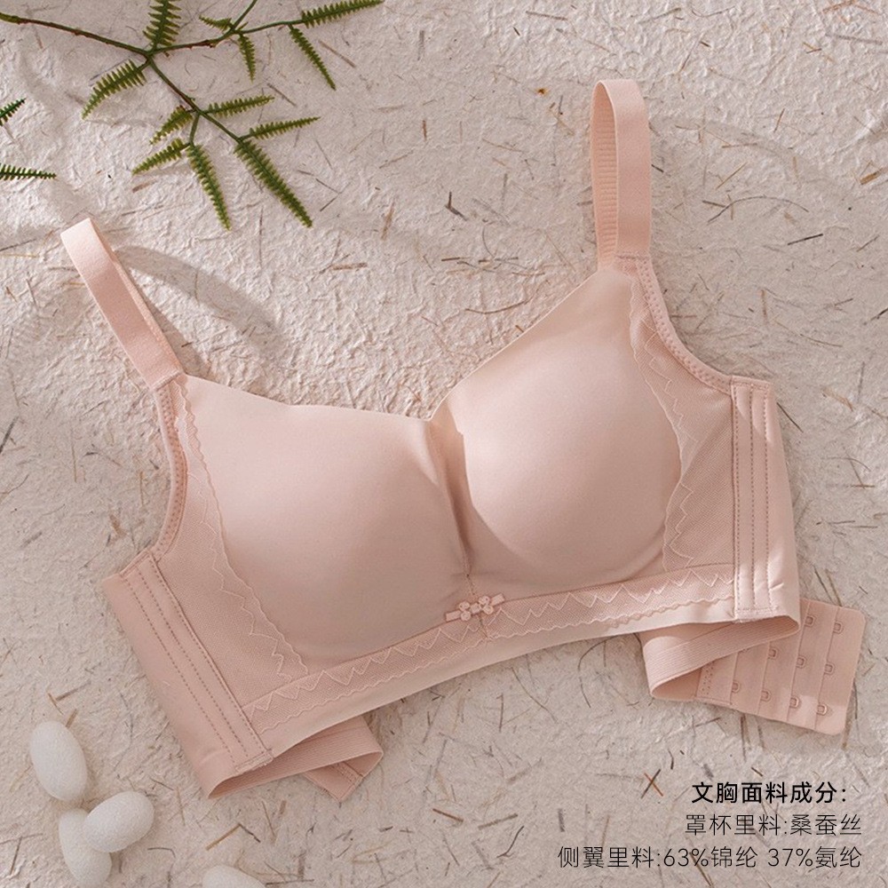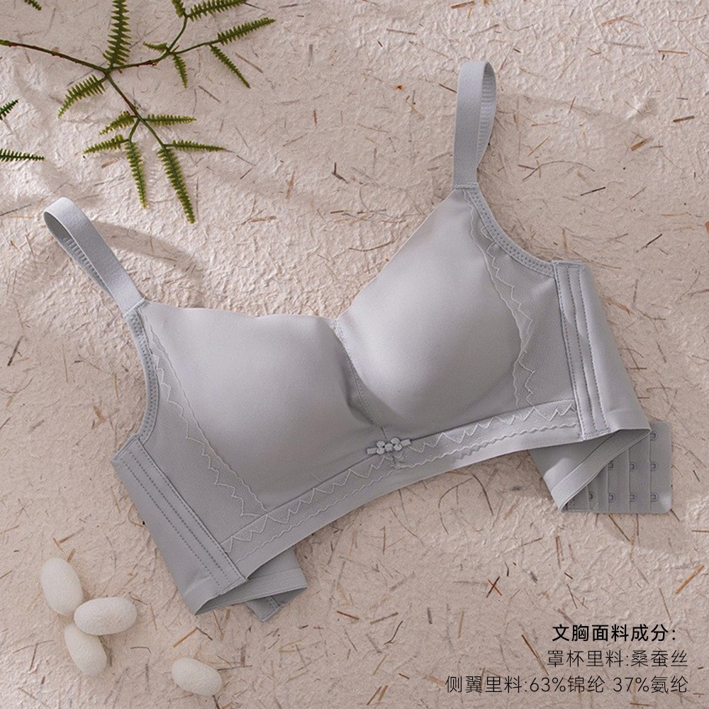 실크 노와이어 조절형 푸쉬업 브라, 편안한 가슴살 보정, 얇은 멀버리 실크 속옷, 레이스 신상품