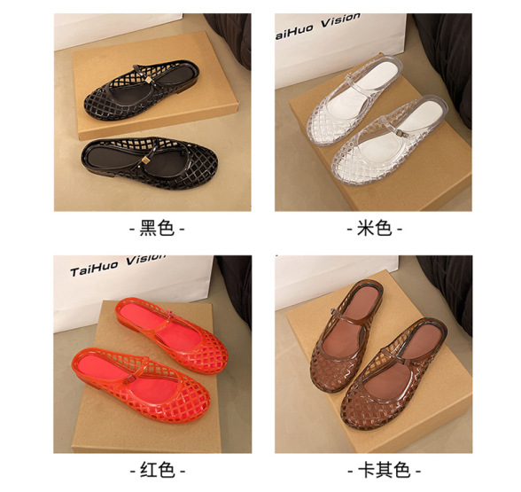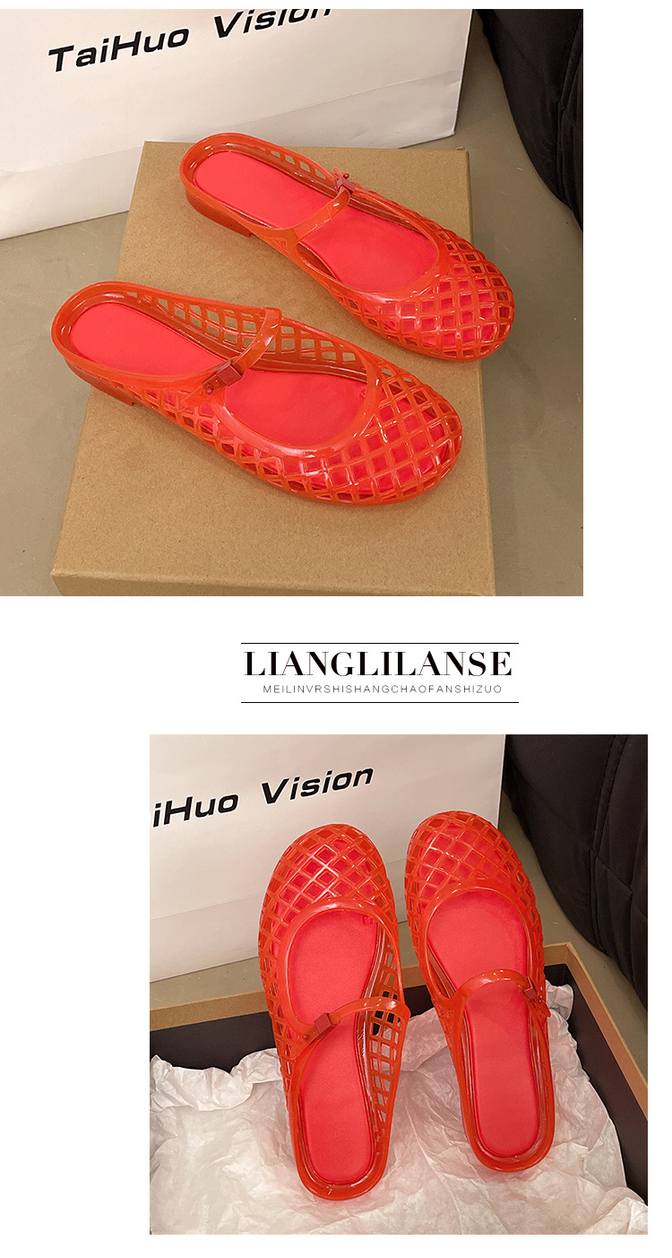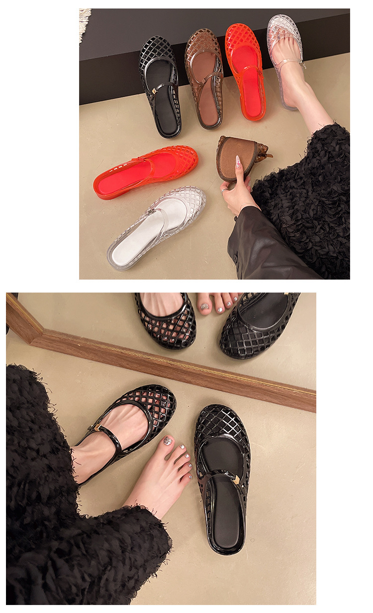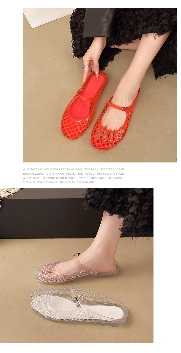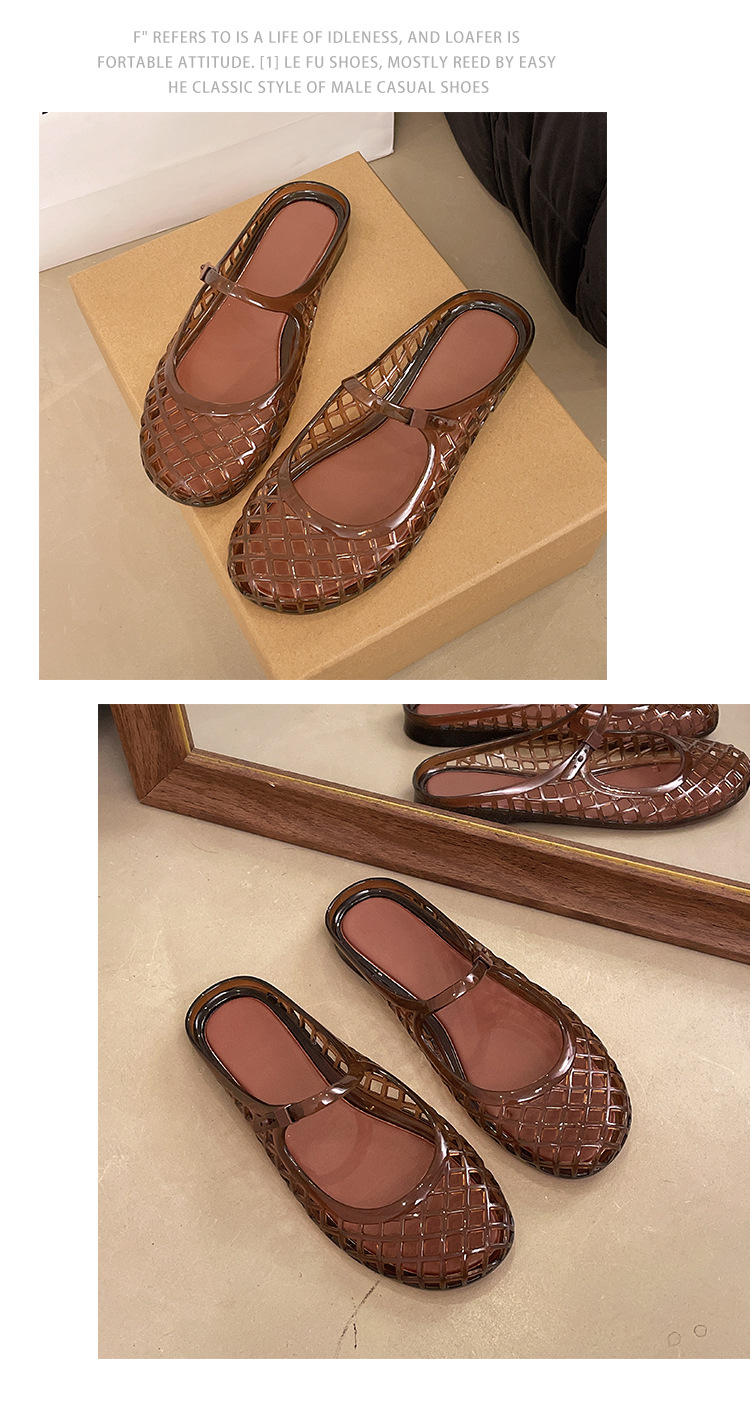 2025 새로운 스타일 중공 여성 탄성 표면 편안하고 다재다능한 메리 제인 신발 샌들 금속 버클 벨트 다목적 플랫 통기성스토어 가기