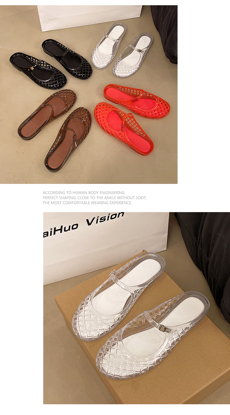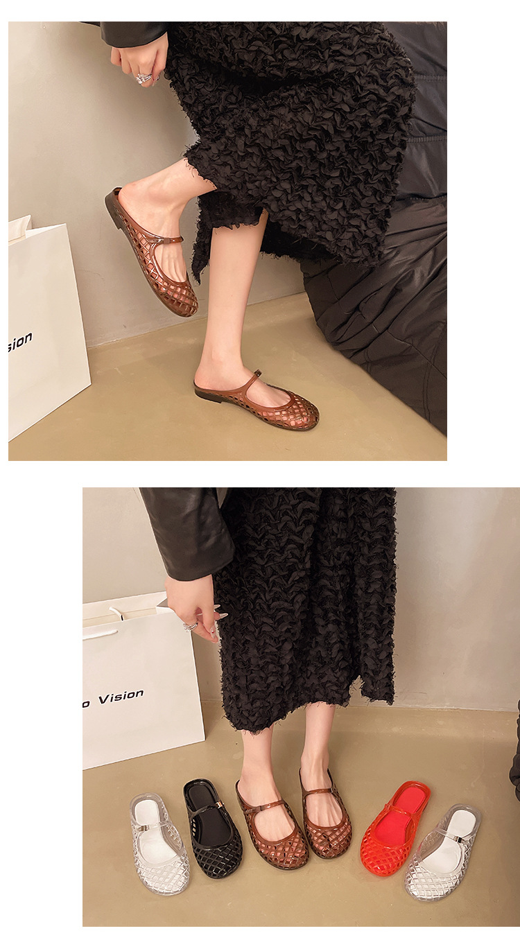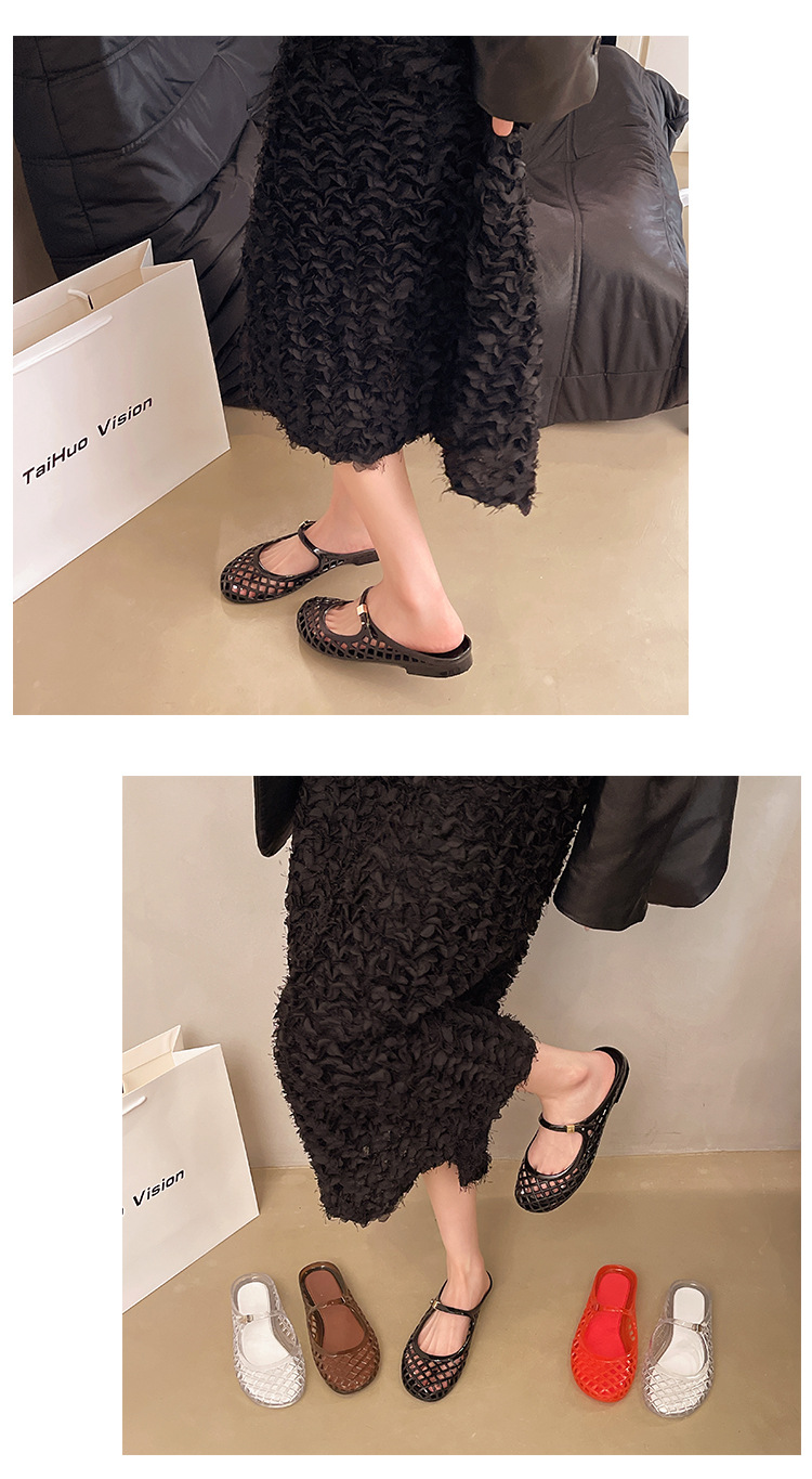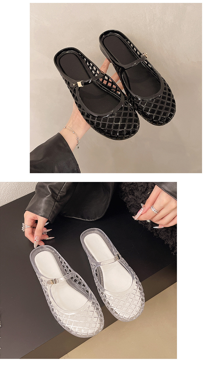 2025 새로운 스타일 중공 여성 탄성 표면 편안하고 다재다능한 메리 제인 신발 샌들 금속 버클 벨트 다목적 플랫 통기성스토어 가기