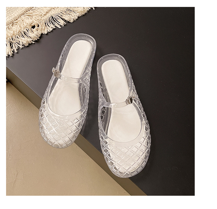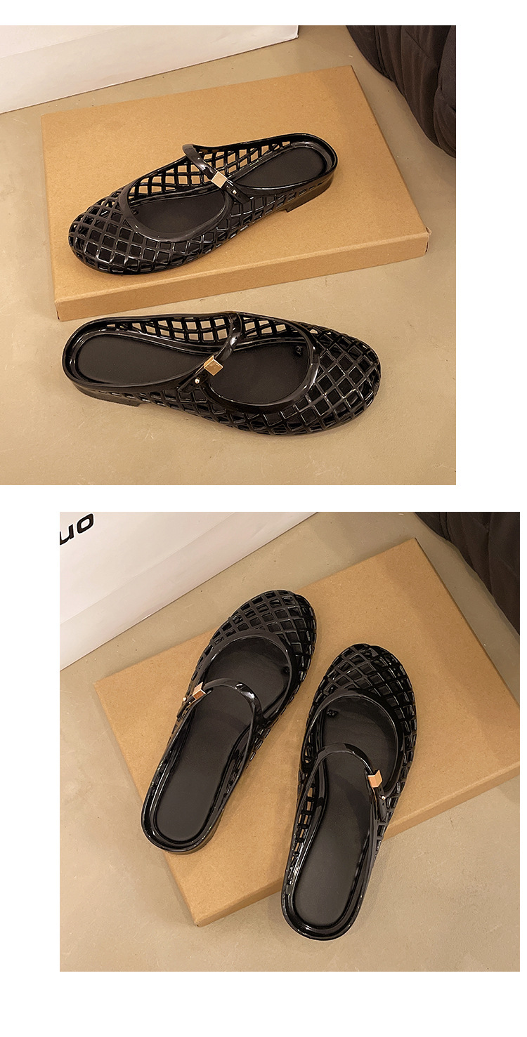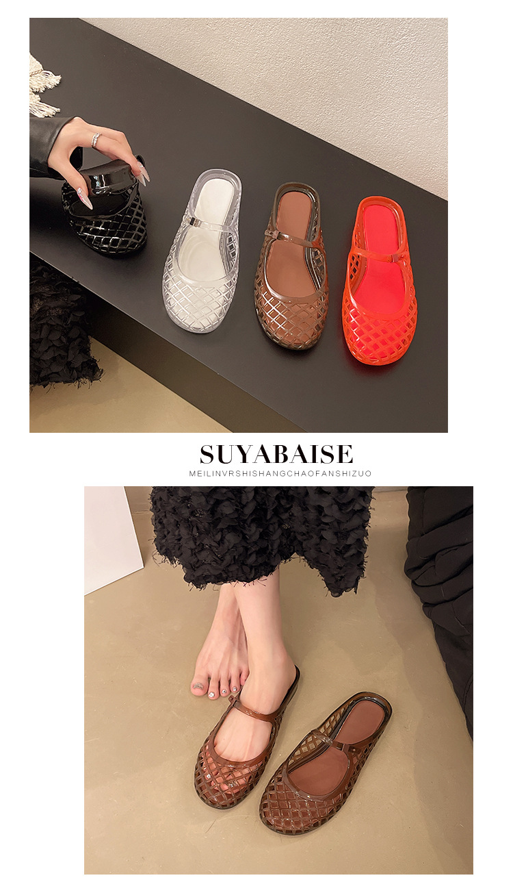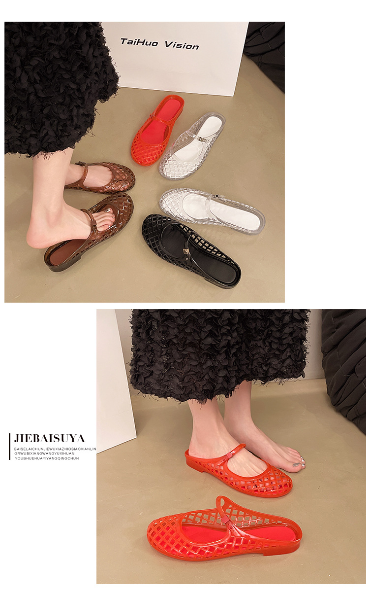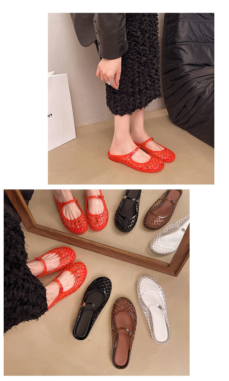 2025 새로운 스타일 중공 여성 탄성 표면 편안하고 다재다능한 메리 제인 신발 샌들 금속 버클 벨트 다목적 플랫 통기성스토어 가기