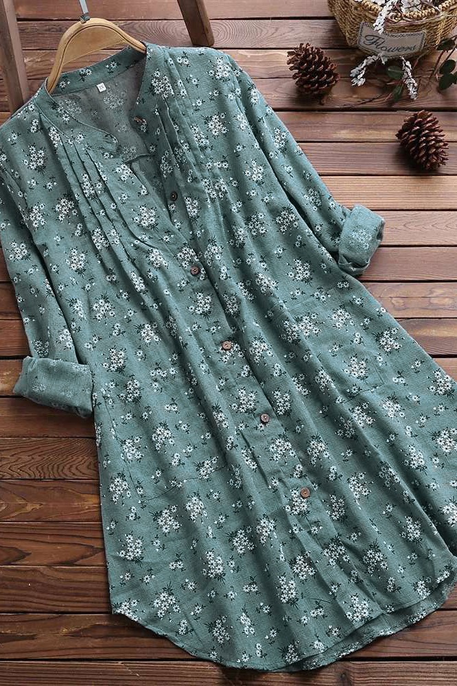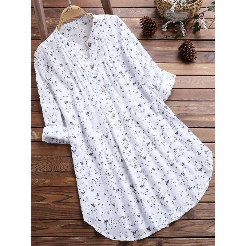 2025 여성 셔츠 새로운 스타일의 면 및 린넨 꽃무늬 중간 길이 루즈 셔츠스토어 가기