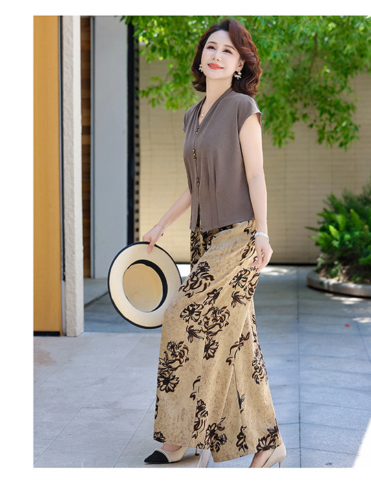 엄마복 2025 여름 신작 스타일 스커트 투피스 세트 우아한 중년 스커트 여성 여름 패션 스커트