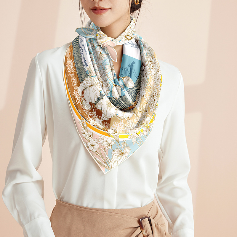 새로운 실크 스카프, 고급 100% 뽕나무 실크, 여신의 날 선물, 기성품 실크 스카프, 심플한 유럽풍 실크 기념품