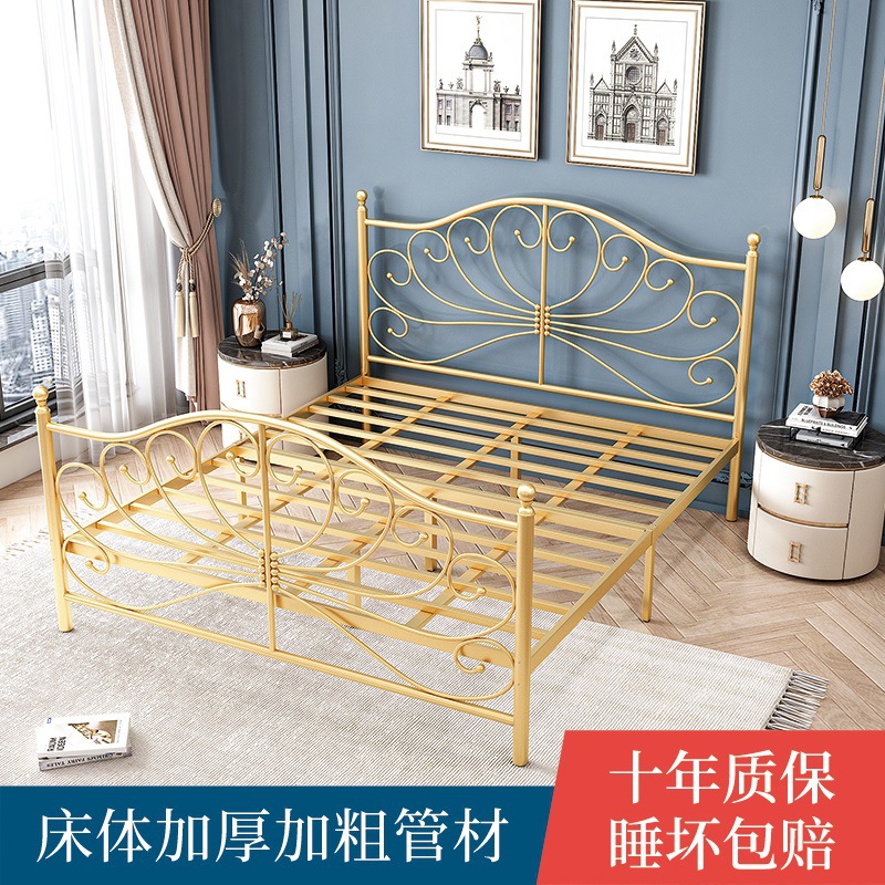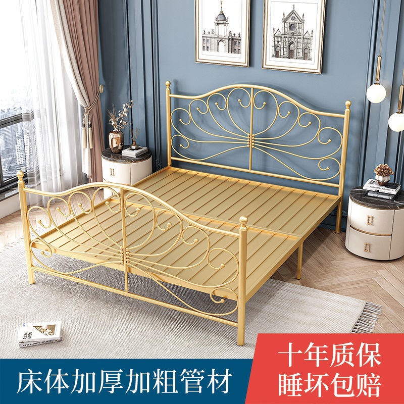 유럽 ​​스타일의 황금 공주 철 침대 마스터 침실 대형 침대 1.68m 더블 침대 소녀 아파트 기숙사 철 프레임 침대스토어 가기