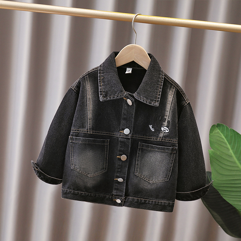2025 새로운 가을 소년 데님 재킷 대형, 중형 및 소형 아동 캐주얼 클린 버전 재킷 소년 봄, 가을상의