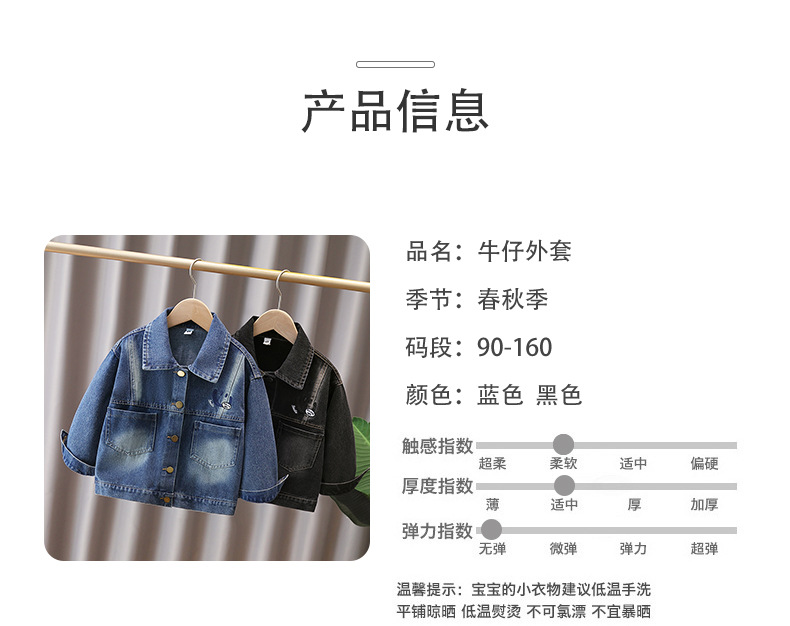 2025 새로운 가을 소년 데님 재킷 대형, 중형 및 소형 아동 캐주얼 클린 버전 재킷 소년 봄, 가을상의스토어 가기