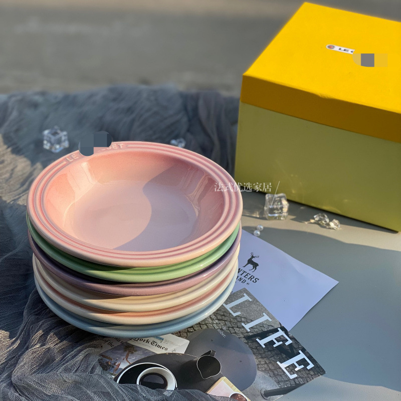 프랑스의 멋진 무지개 그라데이션 식기, 식전용 펫 플레이트, 세라믹 플레이트, 고온 방지 고급 접시스토어 가기