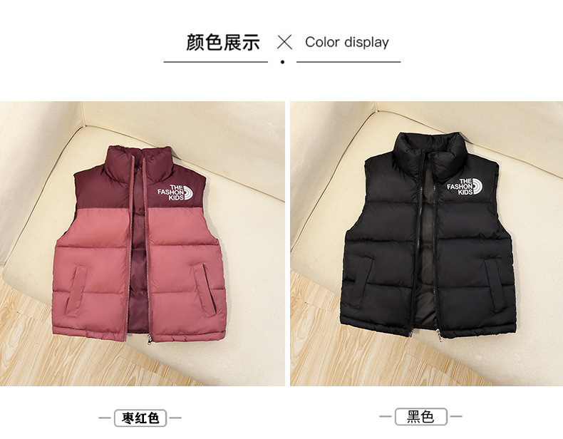 2025년 신형 아동용 면조끼, 중대형 아동용 스탠드업 칼라 조끼, 아기의 두껍고 따뜻한 넓은 어깨, 패셔너블하고 다재다능한 도매스토어 가기