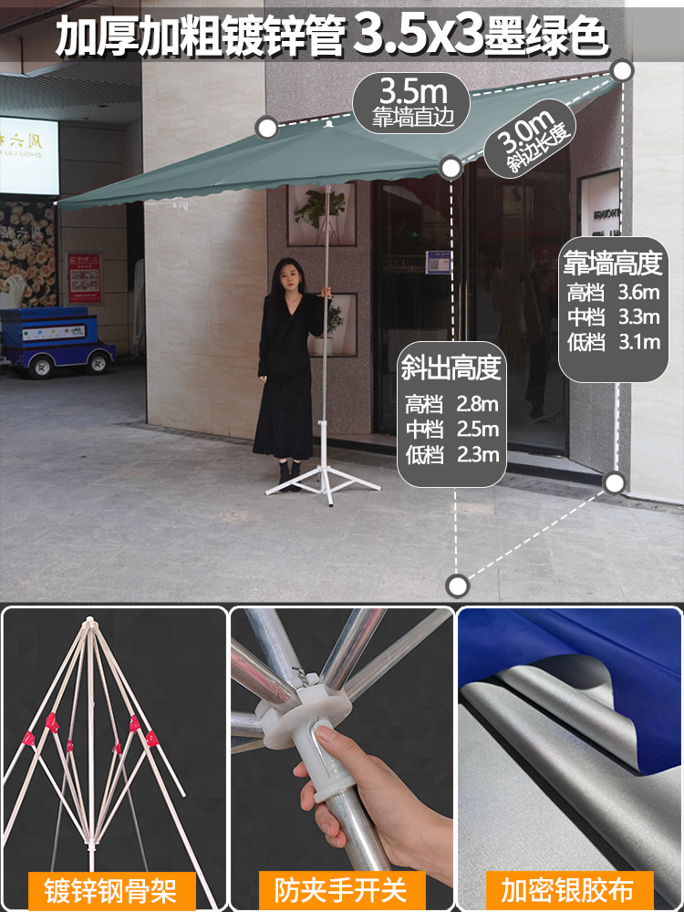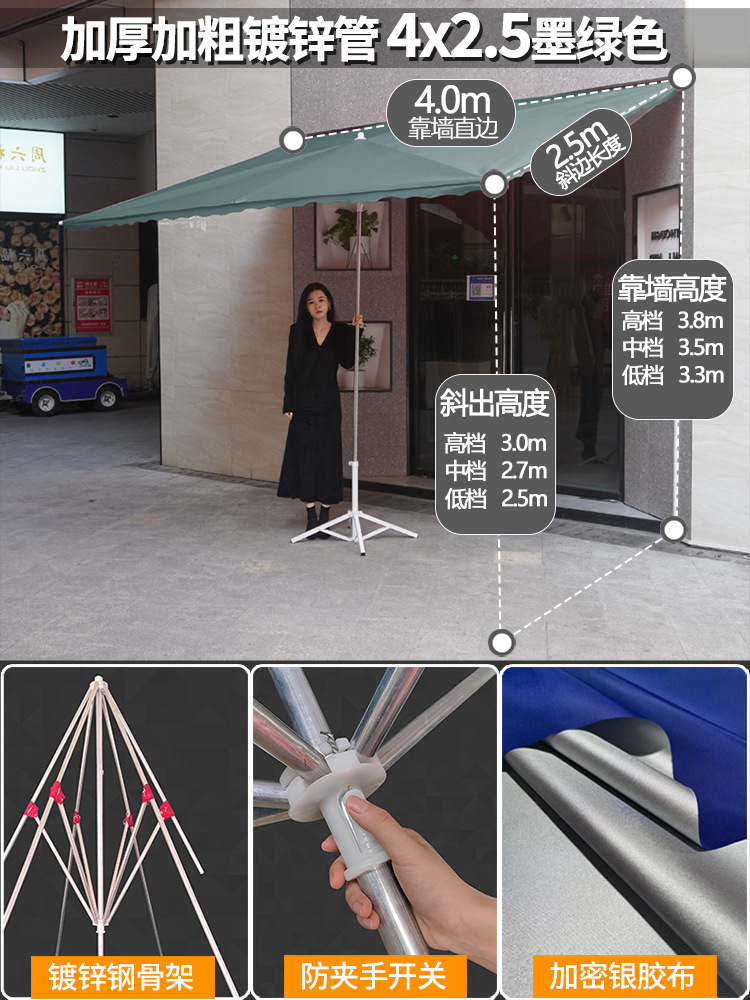 • (진한 녹색) 경사우산 4x 3.1m 갈비 [굵고 두꺼운 스타일]