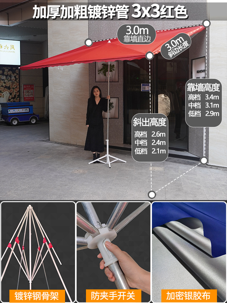 • (빨간색) 경사우산 3x 3.6m 갈비뼈 [굵고 두꺼운 스타일]